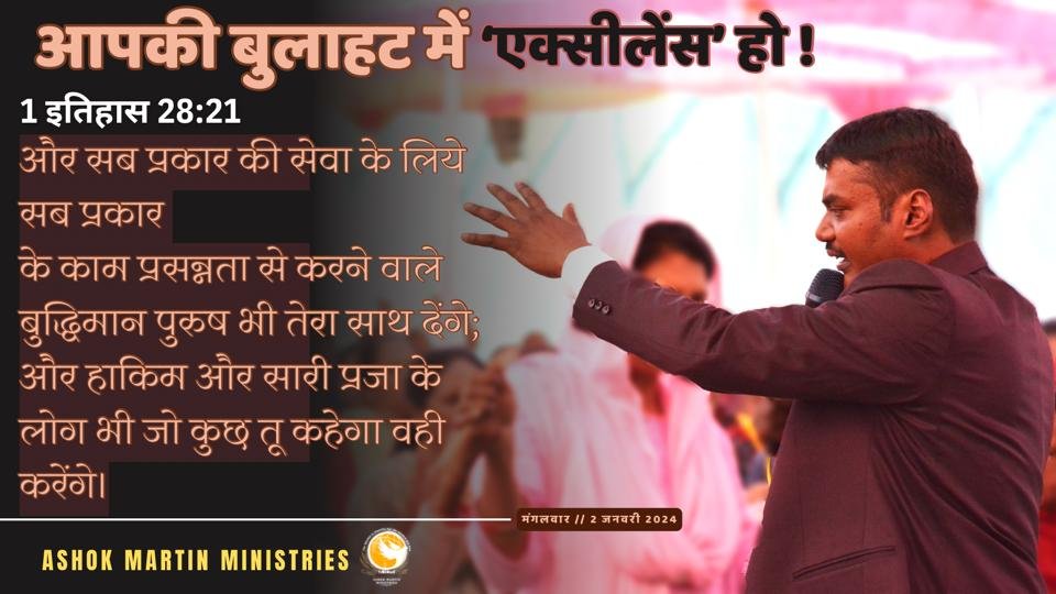 इस वर्ष – परमेश्वर आपके जीवन में अपने उद्देश्य को पूरा करने के लिए आपकी सेवाकाई में सहायकों को भेज रहा है। वह आपकी सेवकाई के हर क्षेत्र के लिए इच्छुक, कुशल कार्यकर्ताओं को भेज रहा है जो परमेश्वर की आत्मा से, योग्यता और बुद्धि से, ज्ञान और सभी प्रकार के कौशल से भरे हुए हैं।