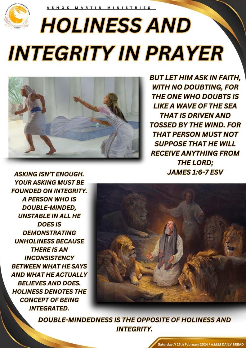 Asking isn’t enough. Your asking must be founded on integrity. A person who is double-minded, unstable in all he does is demonstrating unholiness because there is an inconsistency between what he says and what he actually believes and does. God says, “If you ask Me for something and then doubt that I will give it, don’t even think you will receive it.” God cannot give it if we doubt because He is holy and must remain true to what He has said in His Word.