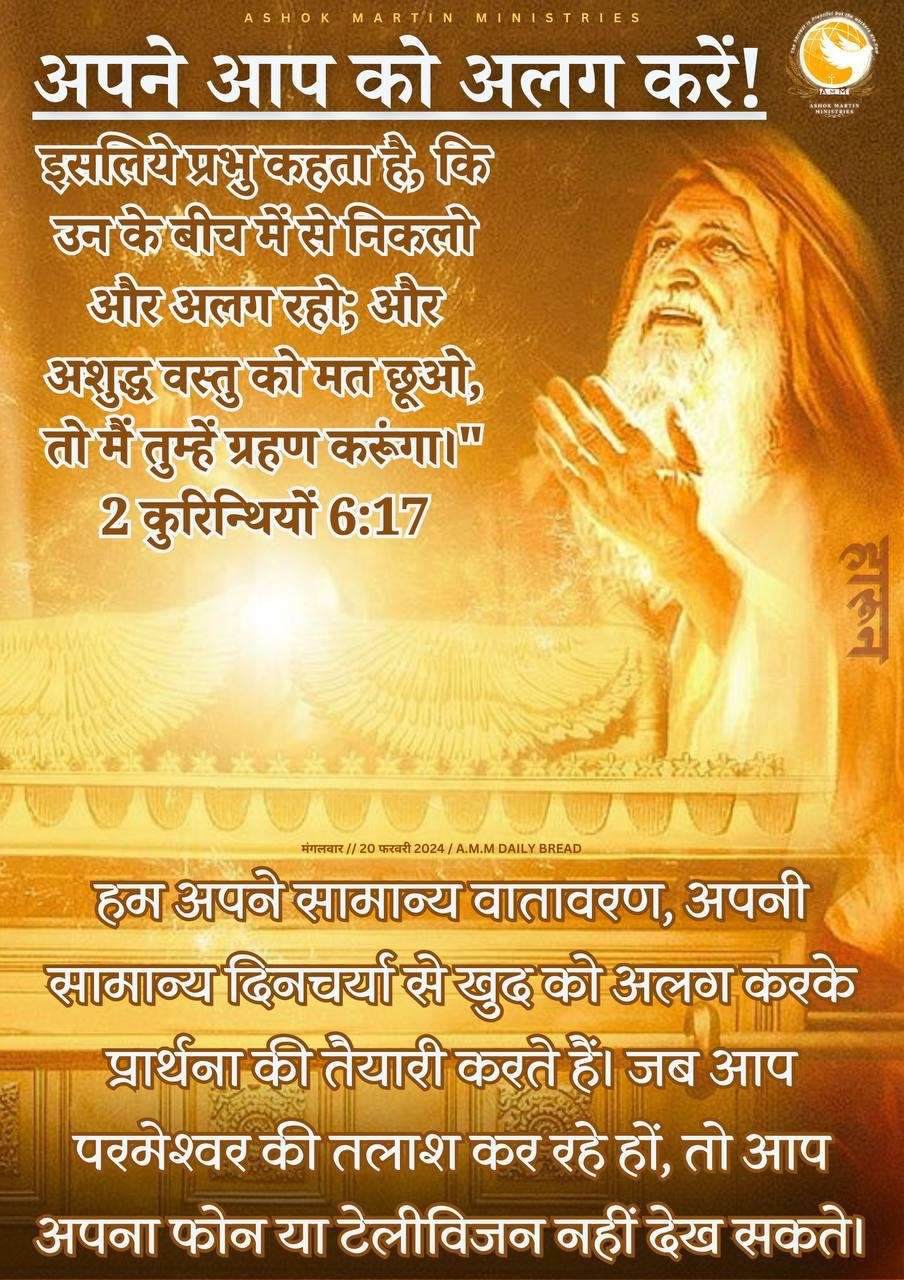 हम अपने सामान्य वातावरण, अपनी सामान्य दिनचर्या से खुद को अलग करके प्रार्थना की तैयारी करते हैं। जब आप परमेश्वर की तलाश कर रहे हों, तो आप अपना फोन या टेलीविजन नहीं देख सकते। आप अन्य लोगों की बातों पर ध्यान नहीं दे सकते। आप ध्यान भटकाने वाली बातों के आसपास नहीं रह सकते। यदि आप परमेश्वर की खोज में हैं तो आपको इसके प्रति गंभीर होना होगा। परमेश्वर कहते हैं, “तुम मुझे ढूंढ़ोगे और पाओगे भी; क्योंकि तुम अपने सम्पूर्ण मन से मेरे पास आओगे।” यिर्मयाह 29: 13