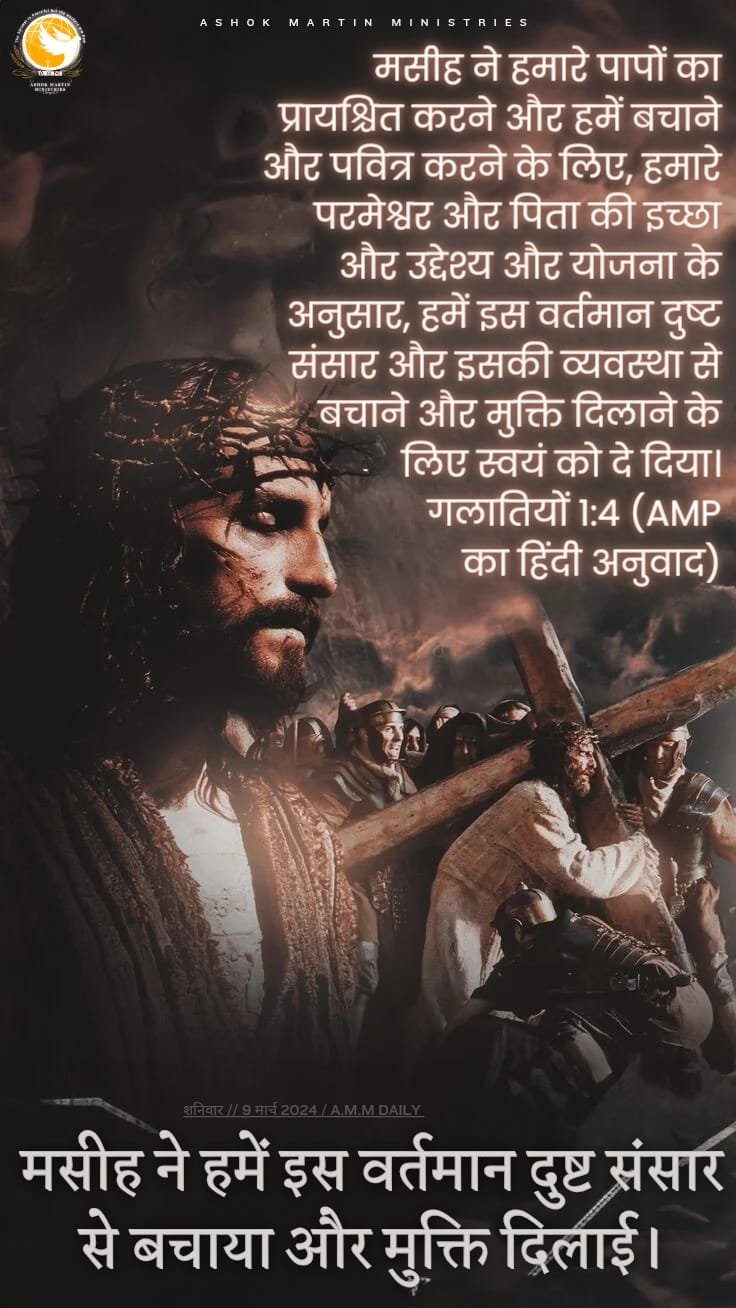 मसीह ने हमारे पापों का प्रायश्चित करने और हमें बचाने और पवित्र करने के लिए, हमारे परमेश्वर और पिता की इच्छा और उद्देश्य और योजना के अनुसार, हमें इस वर्तमान दुष्ट संसार और इसकी व्यवस्था से बचाने और मुक्ति दिलाने के लिए स्वयं को दे दिया।