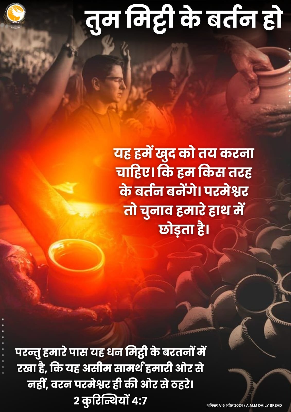मिट्टी के बर्तनों में खजाना परमेश्वर की महिमा है। और मिट्टी का बर्तन आपका शरीर है – जो पवित्र आत्मा का मंदिर! यह वह मंदिर है जिसके बारे में परमेश्वर ने कहा है कि इसे पवित्र किया जाना चाहिए और अलग रखा जाना चाहिए। यह परमेश्वर को समर्पित एक मंदिर है। एक पवित्र चीज़। परमेश्वर को इन अंतिम दिनों में एक काम करना है, और वह ऐसे लोगों को चाहता है जो उसके प्रति समर्पित हों।