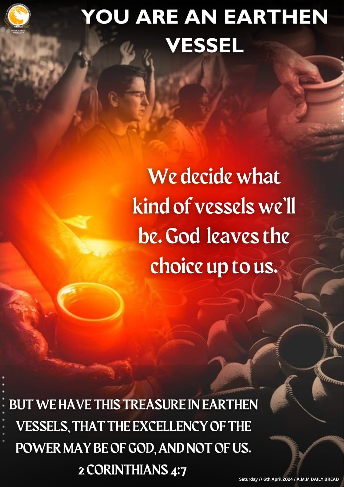 How is it determined whether we’re going to be vessels of honor or vessels of dishonor? “If a man therefore purges himself…” “If a man….” it’s we who must do it. We decide what kind of vessels we’ll be. God leaves the choice up to us. He’s asking us to purge ourselves from the things that are not right in His sight.