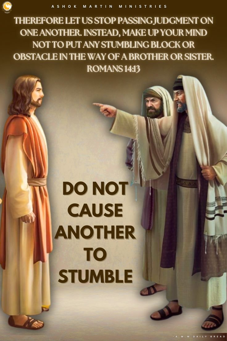 Therefore let us stop passing judgment on one another. Instead, make up your mind not to put any stumbling block or obstacle in the way of a brother or sister.