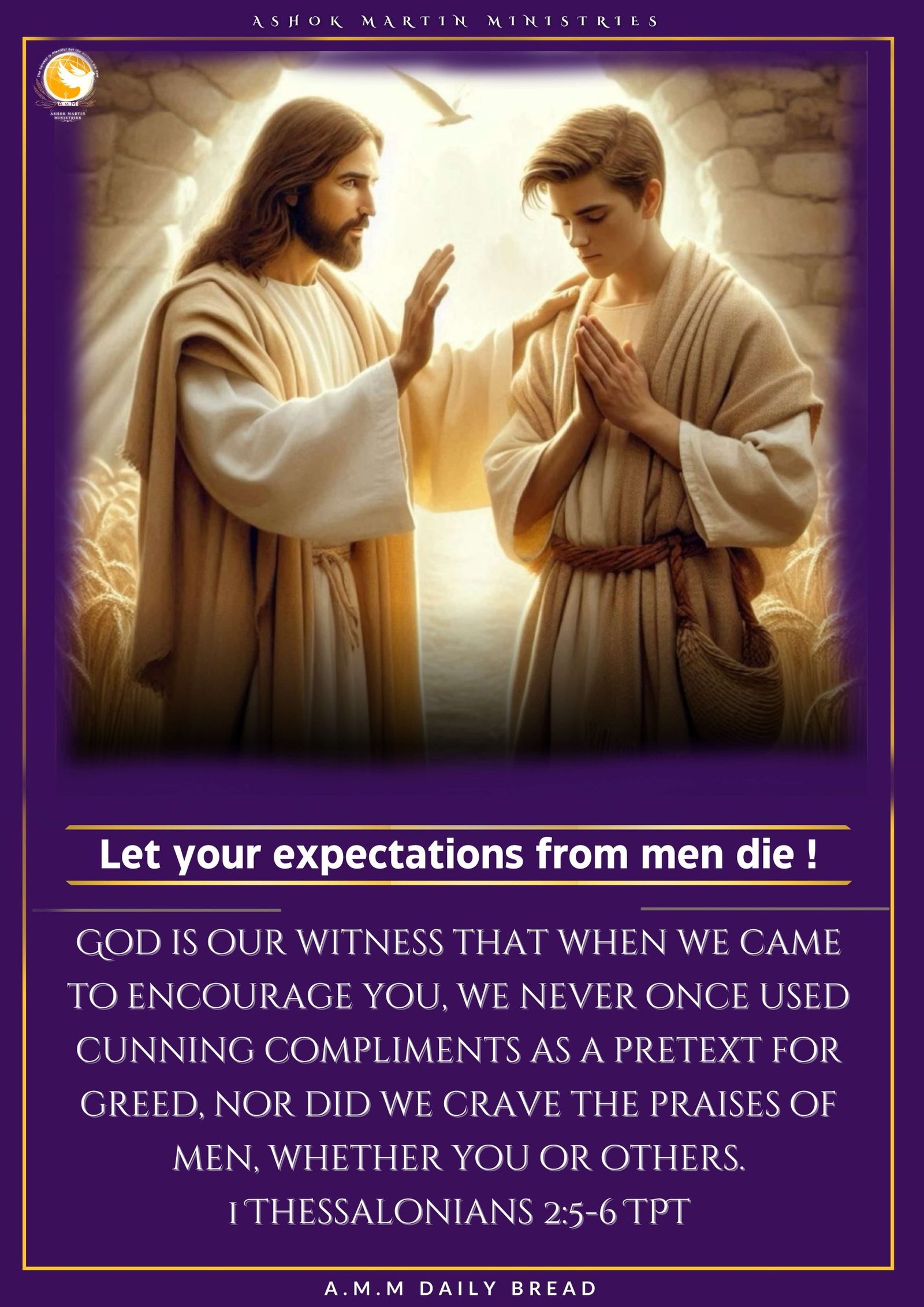 If you live from expectation from people, you’ll experience constant frustration and even anger, because life has a tendency for dashing our expectations. To be more precise, don’t expect too much even from God’s people. If you do, disappointment will surely follow. If you are in ministry, lower your expectations. Really low 🙂.