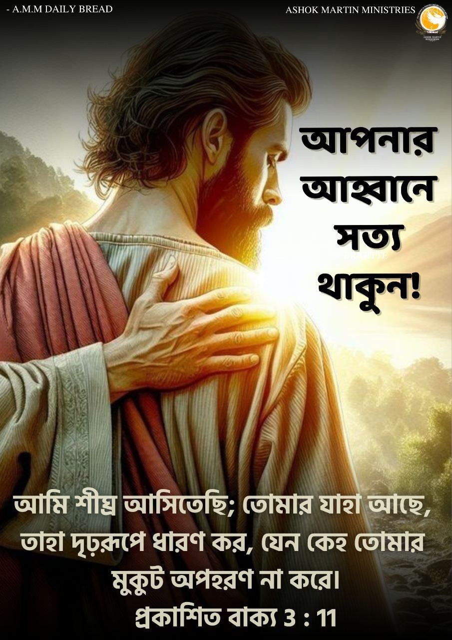 আমি শীঘ্র আসিতেছি; তোমার যাহা আছে, তাহা দৃঢ়রূপে ধারণ কর, যেন কেহ তোমার মুকুট অপহরণ না করে। প্রকাশিত বাক্য 3 : 11