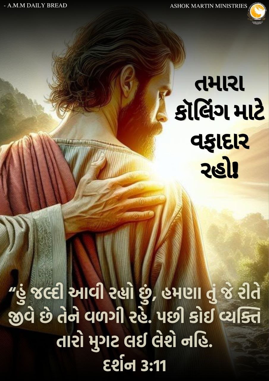 > “હું જલ્દી આવી રહ્યો છું, હમણા તું જે રીતે જીવે છે તેને વળગી રહે. પછી કોઈ વ્યક્તિ તારો મુગટ લઈ લેશે નહિ.દર્શન 3:11