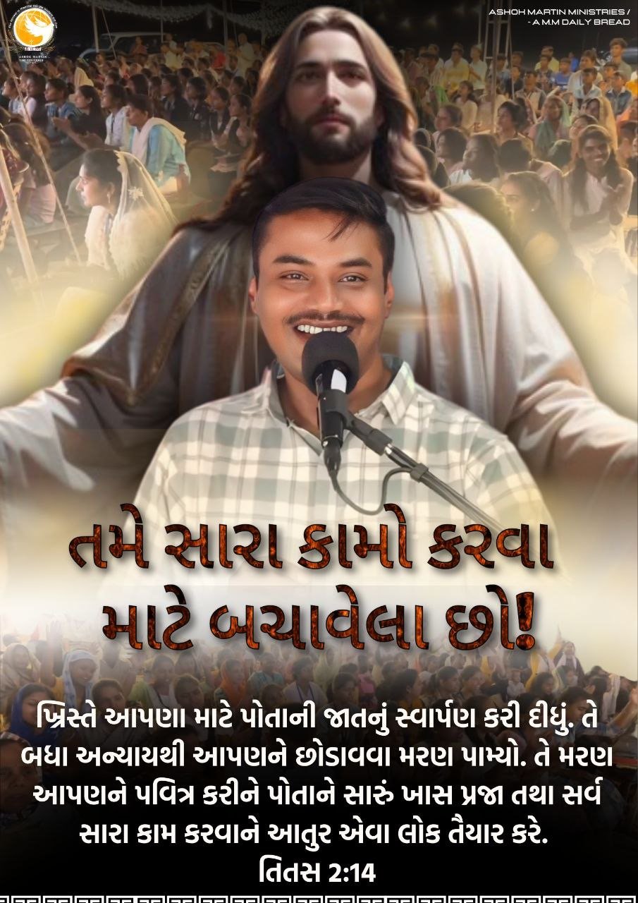 > ‘ખ્રિસ્તે આપણા માટે પોતાની જાતનું સ્વાર્પણ કરી દીધું. તે બધા અન્યાયથી આપણને છોડાવવા મરણ પામ્યો. તે મરણ આપણને પવિત્ર કરીને પોતાને સારું ખાસ પ્રજા તથા સર્વ સારા કામ કરવાને આતુર એવા લોક તૈયાર કરે. તિતસ 2:14`