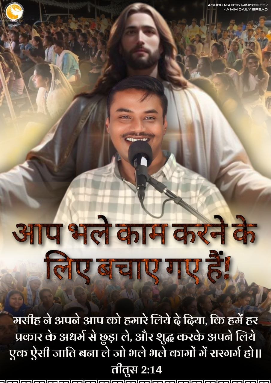 > मसीह ने अपने आप को हमारे लिये दे दिया, कि हमें हर प्रकार के अधर्म से छुड़ा ले, और शुद्ध करके अपने लिये एक ऐसी जाति बना ले जो भले भले कामों में सरगर्म हो॥ तीतुस 2:14