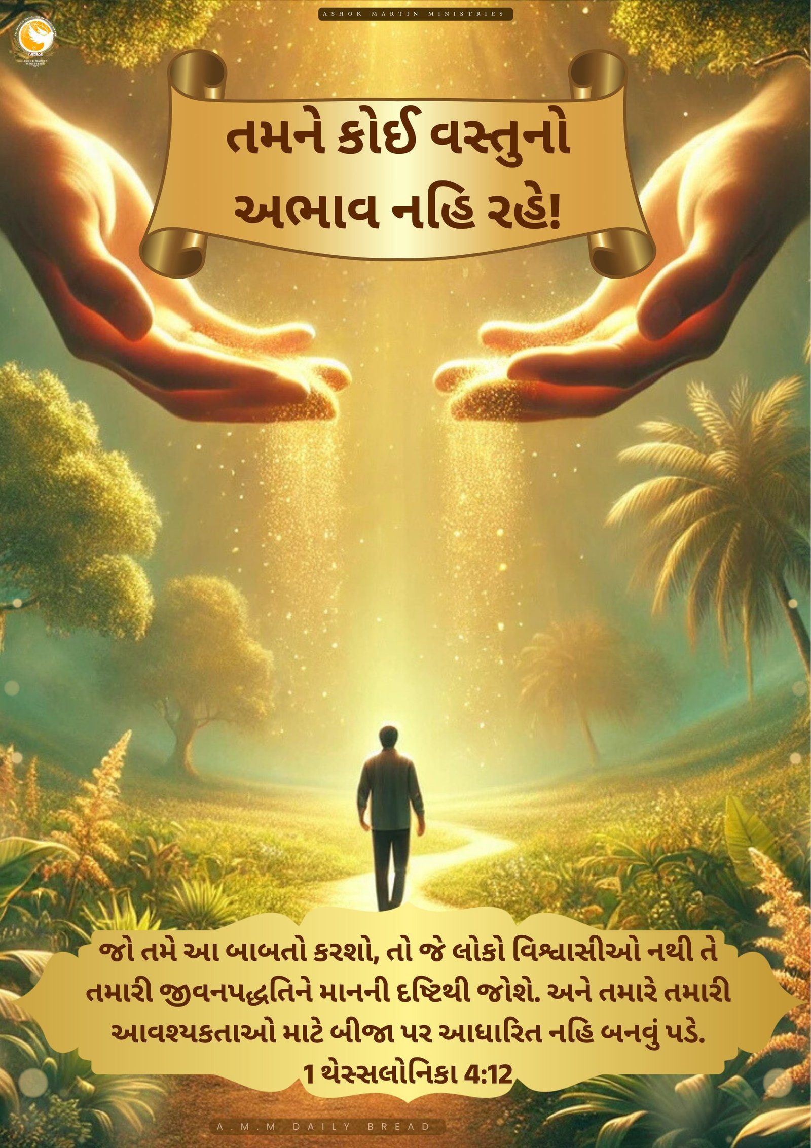 પરમેશ્વરે આદેશ આપ્યો છે કે તમને “કંઈ પણ વસ્તુનો અભાવ” ના રહે.(1 થેસ્સલોનિકા 4:12) જેનો અર્થ છે કે પરમેશ્વર તમારી બાજુમાં છે. તે ઈચ્છતા નથી કે તમારી પાસે કોઈ પણ વસ્તુની કમી હોય. પરમેશ્વરે “તમારા અભાવને પૂરો કરવા” શક્તિને ગતિમાં ગોઠવી છે (ફિલિપ્પી 2:30).તે આપણને અહીં બતાવે છે કે તે પરમેશ્વરના પુરુષો અને સ્ત્રીઓને તમારા માર્ગે મોકલે છે કે તમારી પાસે જે અભાવ છે તેની જોગવાઈ તમને બતાવી શકે અને તેને કેવી રીતે પ્રાપ્ત કરી શકાય છે તેને બતાવી શકે.