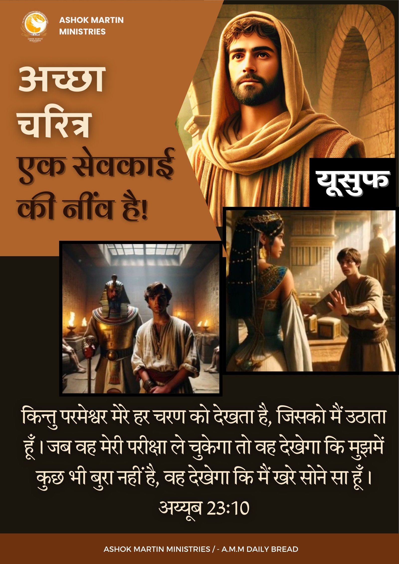 एक अच्छा और पवित्र चरित्र का निर्माण परमेश्वर के वचन को अपने मन में बसा कर उसमें कही गई बातों का पालन करने से होता है। यह उपासना और प्रार्थना में ईमानदारी से समय बिताने, खुशी-खुशी आत्मत्याग करने और दूसरों की सेवा करने से आता है। लोगों के बीच में प्रसिद्ध होना, अच्छे चरित्र की गारंटी नहीं है। किसी ने समझदारी की बात कही कि “जब छोटे लोग लंबी परछाई डालते हैं, तो यह संकेत है कि सूरज ढल रहा है।” इसलिए आइए हम आत्मिक परिश्रम करें कि परखे जाने पर सोने के समान शुद्ध पाए जाए।