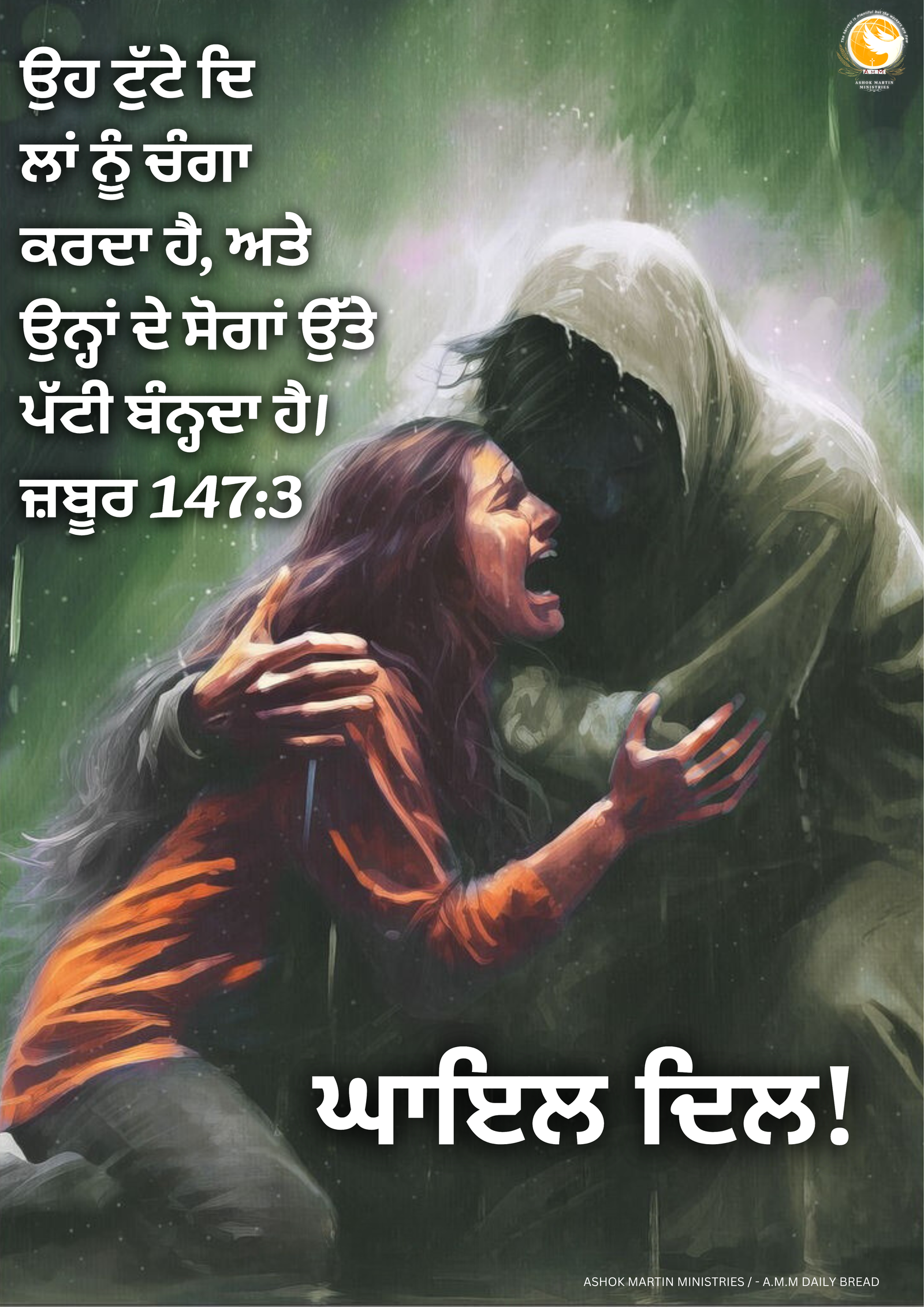 ਉਹ ਟੁੱਟੇ ਦਿਲਾਂ ਨੂੰ ਚੰਗਾ ਕਰਦਾ ਹੈ, ਅਤੇ ਉਨ੍ਹਾਂ ਦੇ ਸੋਗਾਂ ਉੱਤੇ ਪੱਟੀ ਬੰਨ੍ਹਦਾ ਹੈ।ਜ਼ਬੂਰ 147:3