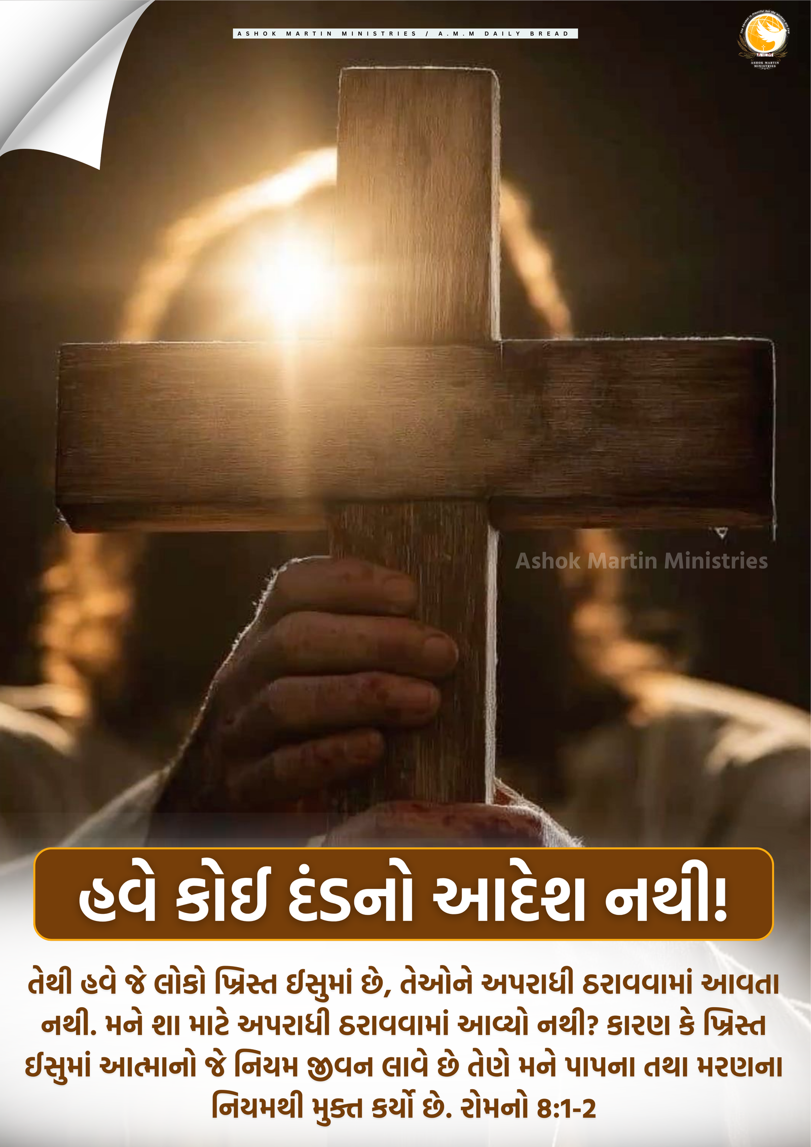 તેથી હવે જે લોકો ખ્રિસ્ત ઈસુમાં છે, તેઓને અપરાધી ઠરાવવામાં આવતા નથી. મને શા માટે અપરાધી ઠરાવવામાં આવ્યો નથી? કારણ કે ખ્રિસ્ત ઈસુમાં આત્માનો જે નિયમ જીવન લાવે છે તેણે મને પાપના તથા મરણના નિયમથી મુક્ત કર્યો છે. રોમનો 8:1-2