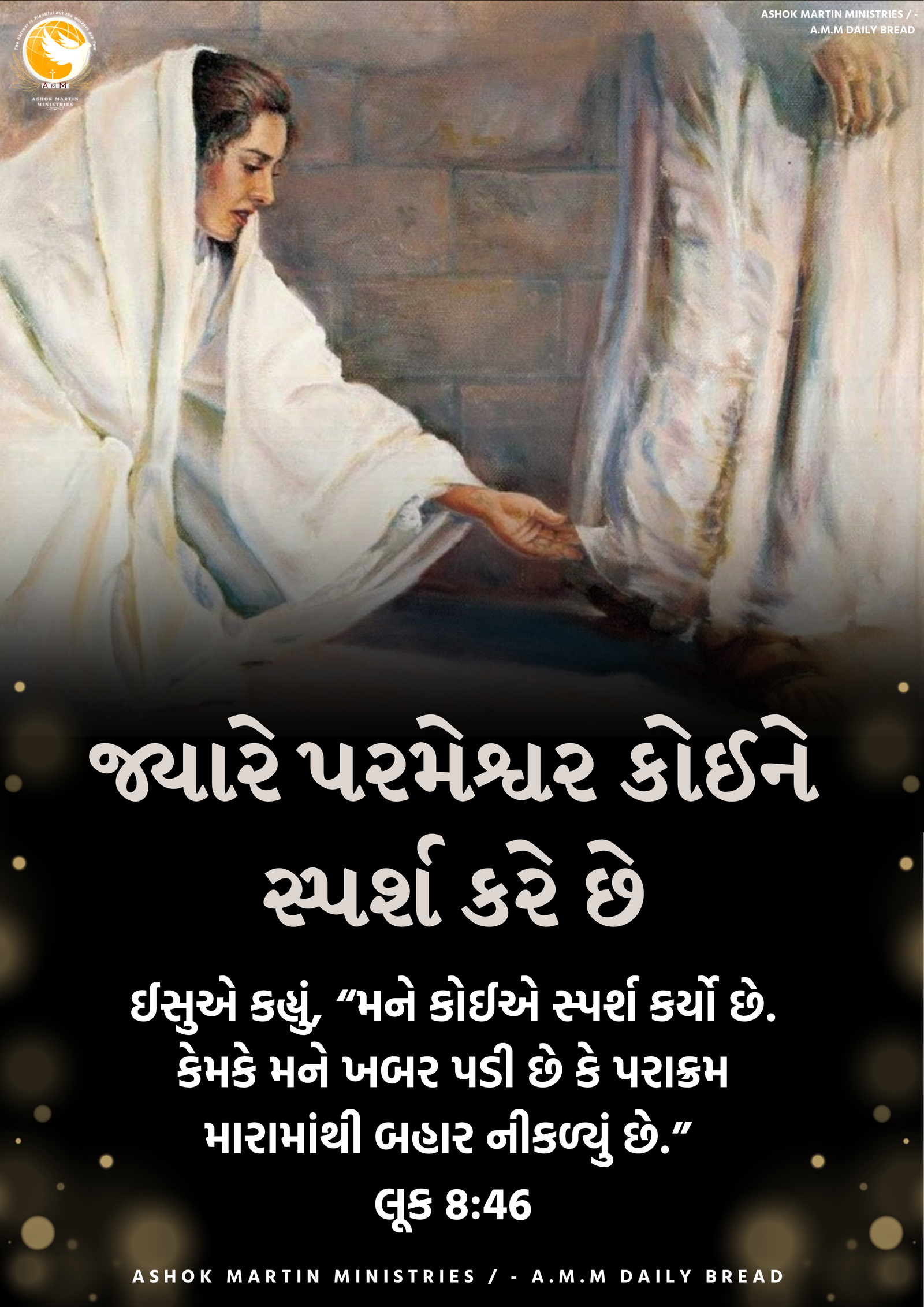 જો તમને પરમેશ્વરનો સ્પર્શ જોઈતો હોય તો આ સ્ત્રીની ક્રિયાઓનું અનુકરણ કરો, ઈસુએ પૂછેલા પ્રશ્નો સાંભળો અને તેની સાથે જાહેરમાં કબૂલ કરો કે તમે તેમને કેમ સ્પર્શ કર્યો. અને તેમને અશુદ્ધ બનાવવાની ચિંતા કરશો નહિ. તે પવિત્ર છે, અને પવિત્રતા અશુદ્ધતા પર વિજય મેળવે છે.