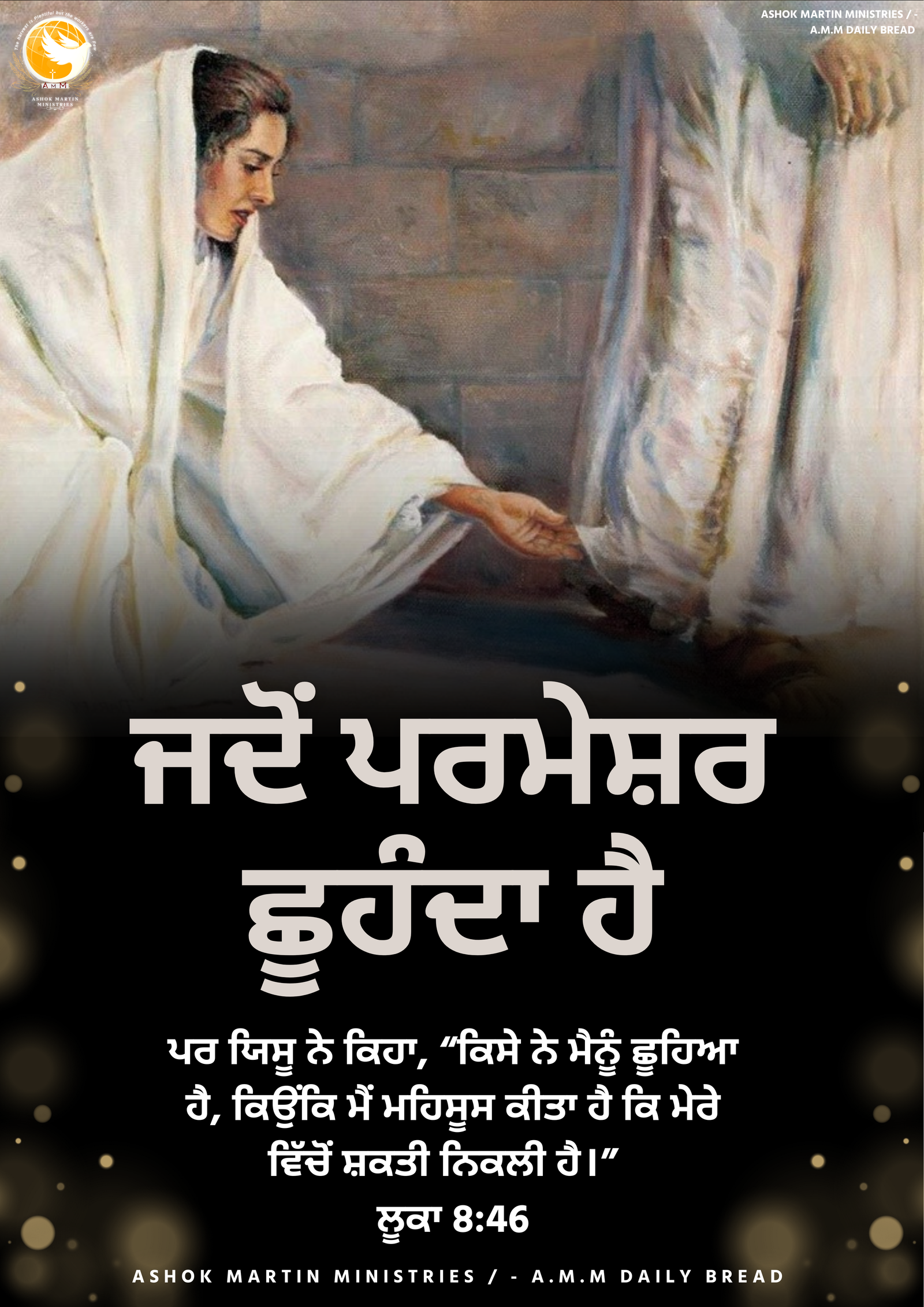 ਜੇ ਤੁਸੀਂ ਪਰਮੇਸ਼ਰ ਦੀ ਛੋਹ(ਸਪਰਸ਼) ਚਾਹੁੰਦੇ ਹੋ ਤਾਂ ਉਸ ਦੇ ਕੰਮਾਂ ਦੀ ਨਕਲ ਕਰੋ, ਯਿਸੂ ਦੇ ਪੁੱਛੇ ਸਵਾਲ ਸੁਣੋ, ਅਤੇ ਉਸ ਨਾਲ ਜਨਤਕ ਤੌਰ ‘ਤੇ ਇਕਬਾਲ ਕਰੋ ਕਿ ਤੁਸੀਂ ਉਸਨੂੰ ਕਿਉਂ ਛੋਹਿਆ ਸੀ ਅਤੇ ਉਸਨਦੇ ਅਸ਼ੁੱਧ ਹੋਣ ਦੀ ਚਿੰਤਾ ਨਾ ਕਰੋ। ਉਹ ਪਵਿੱਤਰ ਪੁਰਖ ਹੈ ਅਤੇ ਪਵਿੱਤਰਤਾ ਅਸ਼ੁੱਧਤਾ ਉੱਤੇ ਜਿੱਤ ਪ੍ਰਾਪਤ ਕਰਦੀ ਹੈ।