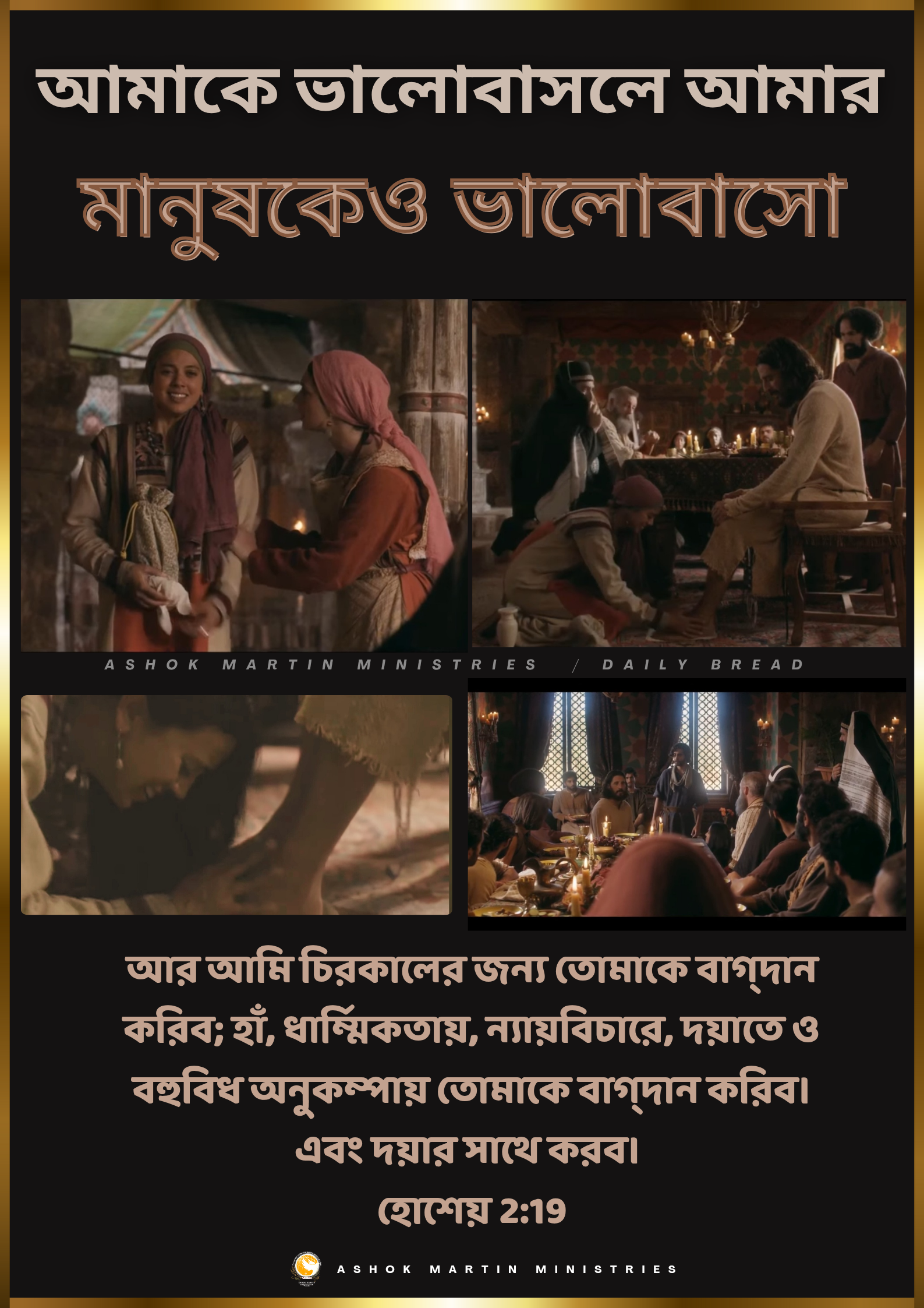 আর আমি চিরকালের জন্য তোমাকে বাগ্দান করিব; হাঁ, ধার্ম্মিকতায়, ন্যায়বিচারে, দয়াতে ও বহুবিধ অনুকম্পায় তোমাকে বাগ্দান করিব। এবং দয়ার সাথে করব। হোশেয় 2:19