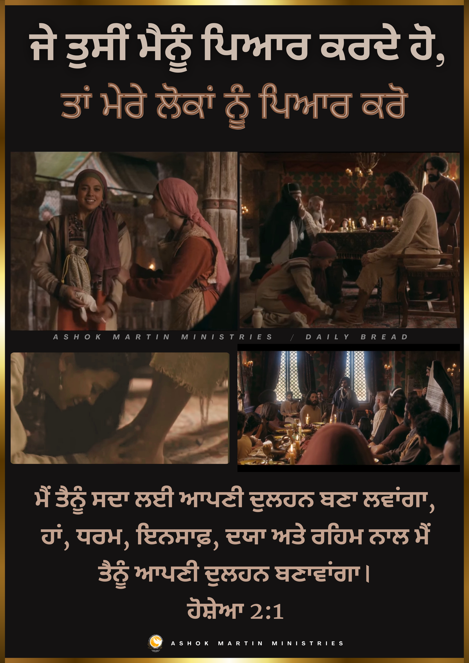 ਰੱਬ ਕਹਿੰਦਾ ਹੈ, ਜੇ ਤੁਸੀਂ ਮੈਨੂੰ ਪਿਆਰ ਕਰਦੇ ਹੋ, ਤਾਂ ਮੇਰੇ ਲੋਕਾਂ ਨੂੰ ਵੀ ਪਿਆਰ ਕਰੋ। ਇਹ ਇੱਕ ਪੈਕੇਜ ਡੀਲ ਹੈ। ਜੇਕਰ ਅਸੀਂ ਪਰਮੇਸ਼ਰ ਨੂੰ ਪਿਆਰ ਕਰਨ ਬਾਰੇ ਗੰਭੀਰ ਹਾਂ, ਤਾਂ ਸਾਨੂੰ ਲੋਕਾਂ ਤੋਂ, ਸਾਰੇ ਲੋਕਾਂ ਤੋਂ ਸ਼ੁਰੂਆਤ ਕਰਨੀ ਚਾਹੀਦੀ ਹੈ। ਅਤੇ ਖਾਸ ਕਰਕੇ ਸਾਨੂੰ ਉਨ੍ਹਾਂ ਨੂੰ ਪਿਆਰ ਕਰਨਾ ਸਿੱਖਣਾ ਚਾਹੀਦਾ ਹੈ ਜਿਨ੍ਹਾਂ ਨੂੰ ਦੁਨੀਆਂ ਆਮ ਤੌਰ ‘ਤੇ ਤਿਆਗ ਦਿੰਦੀ ਹੈ। ਯਿਸੂ ਦੇ ਜ਼ਮਾਨੇ ਵਿੱਚ, ਉਹ ਲੋਕ ਸਨ ਜੋ ਆਪਣੀ ਖੋਖਲੀ ਸੋਚ ਤੋਂ ਸਭ ਤੋਂ ਵੱਧ ਜਾਣੂ ਸਨ ਜੋ ਉਸਦੇ ਪਿਆਰ ਲਈ ਸਭ ਤੋਂ ਵੱਧ ਖੁੱਲ੍ਹੇ ਸਨ। ਤਾਂ ਅੱਜ ਵੀ ਹੈ।