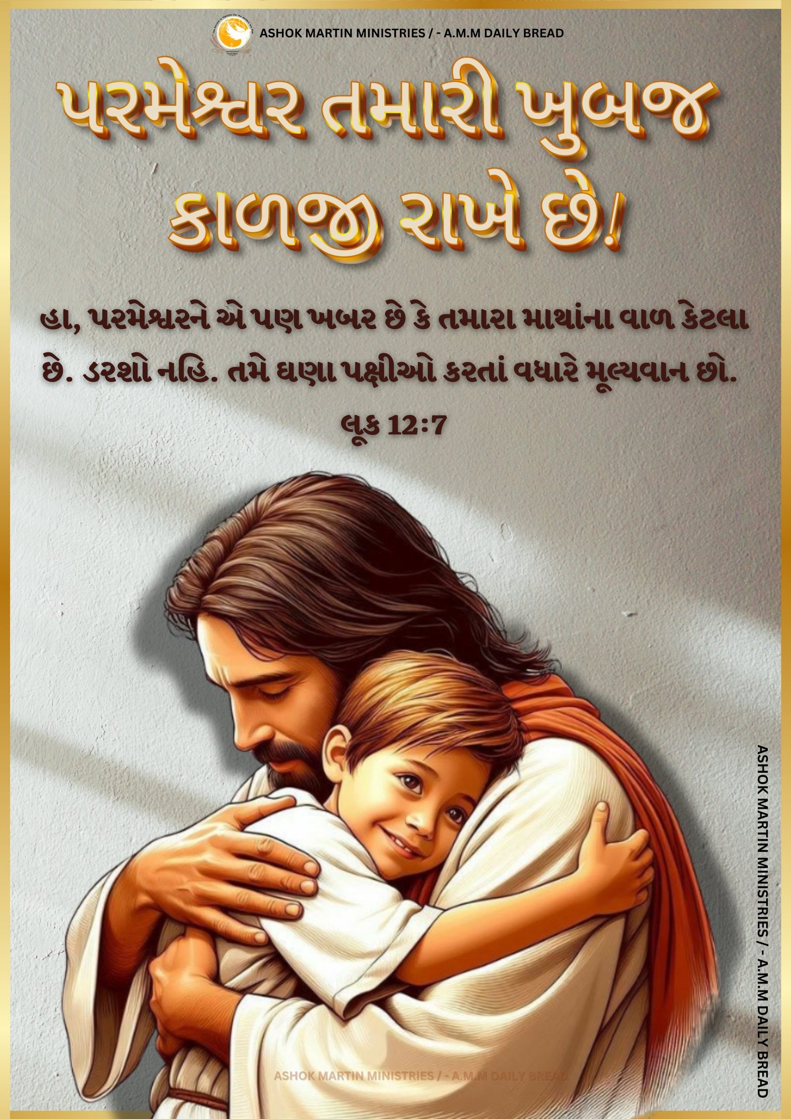`હા, પરમેશ્વરને એ પણ ખબર છે કે તમારા માથાંના વાળ કેટલા છે. ડરશો નહિ. તમે ઘણા પક્ષીઓ કરતાં વધારે મૂલ્યવાન છો. લૂક 12:7`