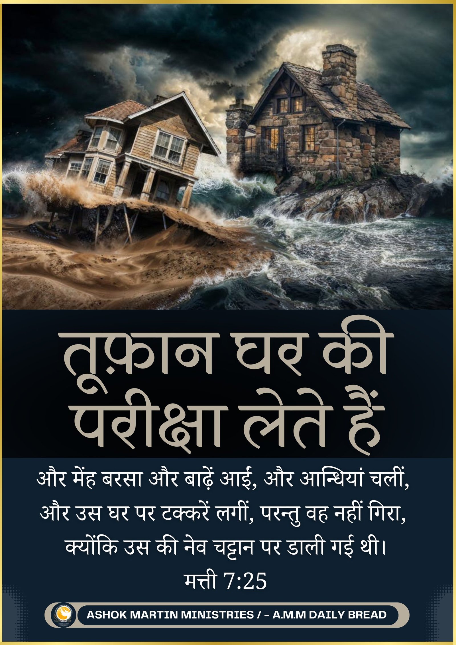 `The rain came down, the streams rose, and the winds blew and beat against that house; yet it did not fall, because it had its foundation on the rock. Matthew 7:25`