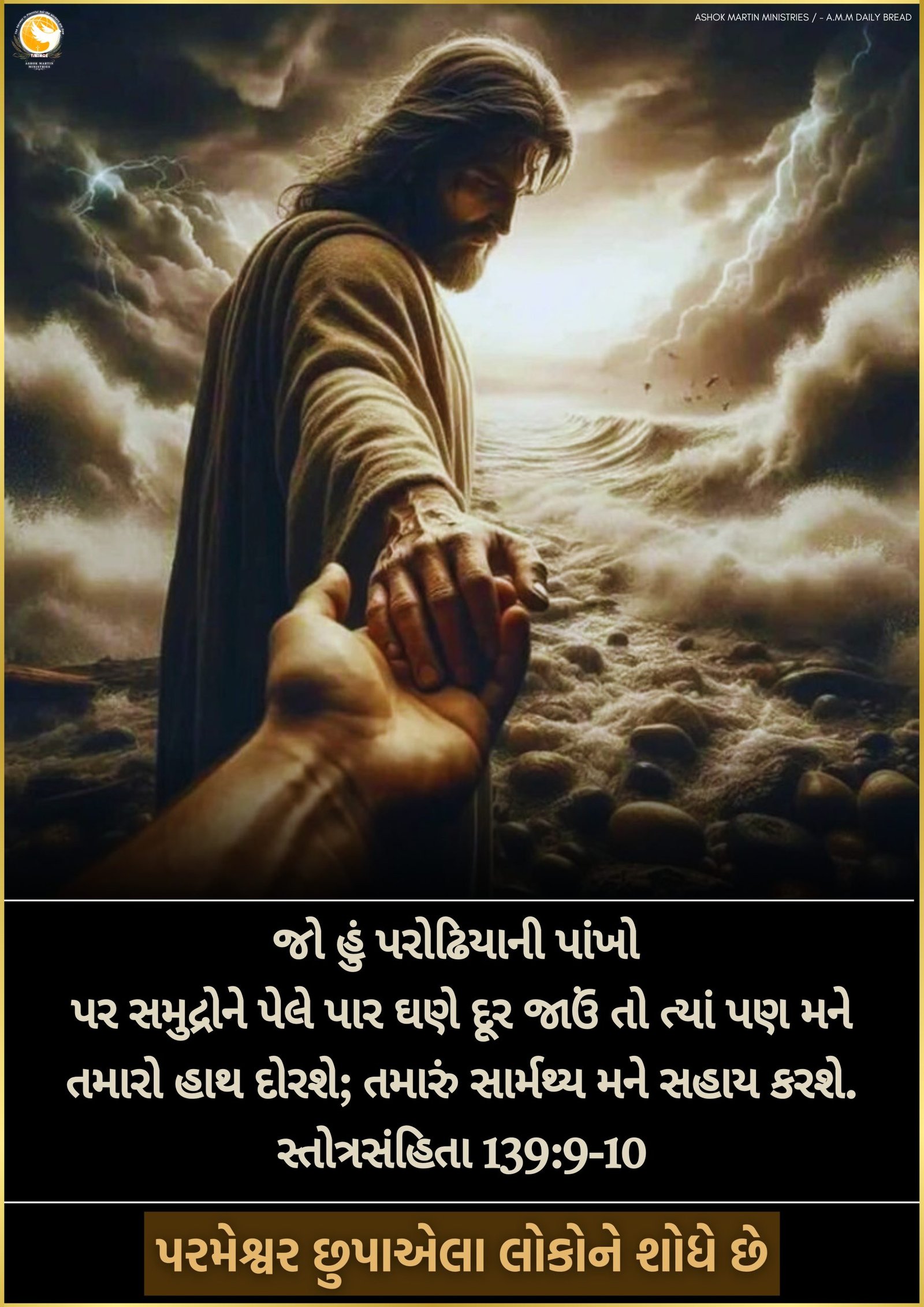 `જો હું પરોઢિયાની પાંખો પર સમુદ્રોને પેલે પાર ઘણે દૂર જાઉં તો ત્યાં પણ મને તમારો હાથ દોરશે; તમારું સાર્મથ્ય મને સહાય કરશે. સ્તોત્રસંહિતા 139:9-10`