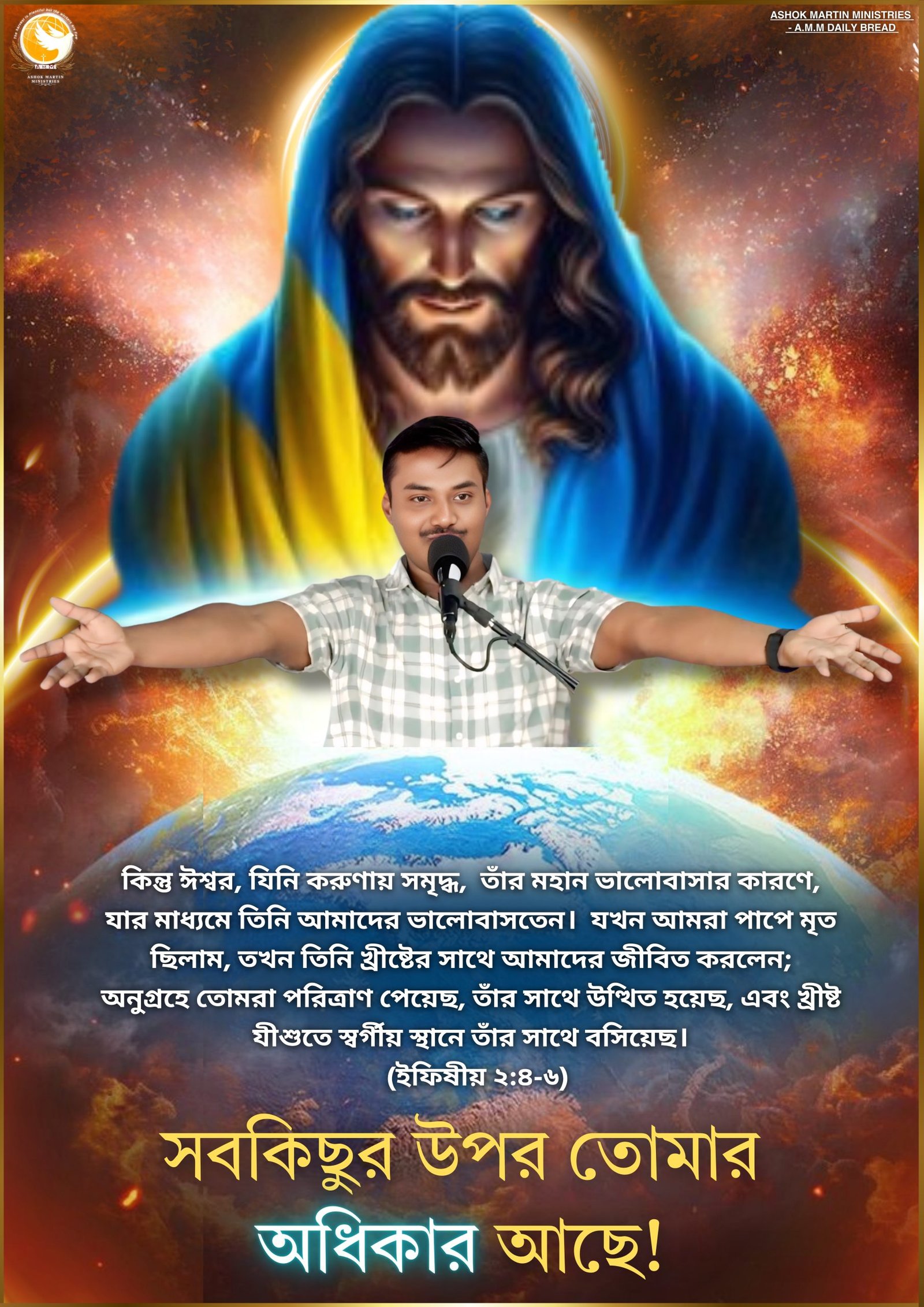 কিন্তু ঈশ্বর, যিনি করুণায় সমৃদ্ধ, তাঁর মহান ভালোবাসার কারণে, যার মাধ্যমে তিনি আমাদের ভালোবাসতেন। যখন আমরা পাপে মৃত ছিলাম, তখন তিনি খ্রীষ্টের সাথে আমাদের জীবিত করলেন; অনুগ্রহে তোমরা পরিত্রাণ পেয়েছ, তাঁর সাথে উত্থিত হয়েছ, এবং খ্রীষ্ট যীশুতে স্বর্গীয় স্থানে তাঁর সাথে বসিয়েছ। (ইফিষীয় ২:৪-৬)`