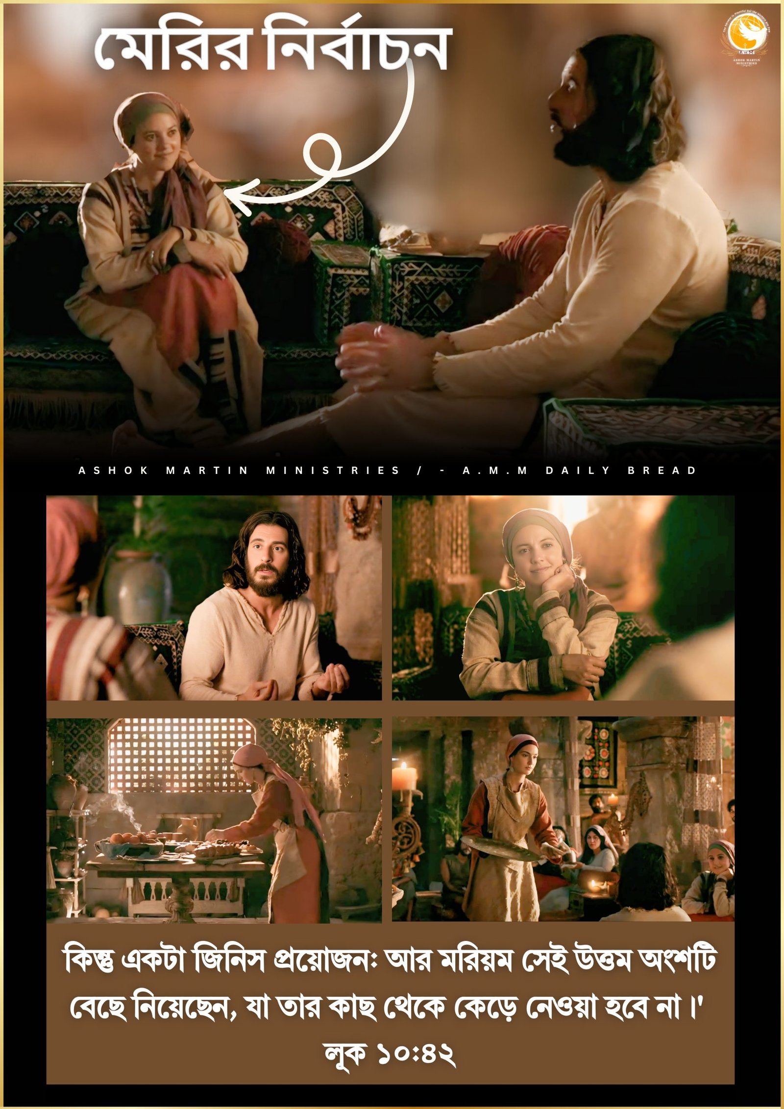 `কিন্তু একটা জিনিস প্রয়োজন: আর মরিয়ম সেই উত্তম অংশটি বেছে নিয়েছেন, যা তার কাছ থেকে কেড়ে নেওয়া হবে না।’ লূক ১০:৪২`