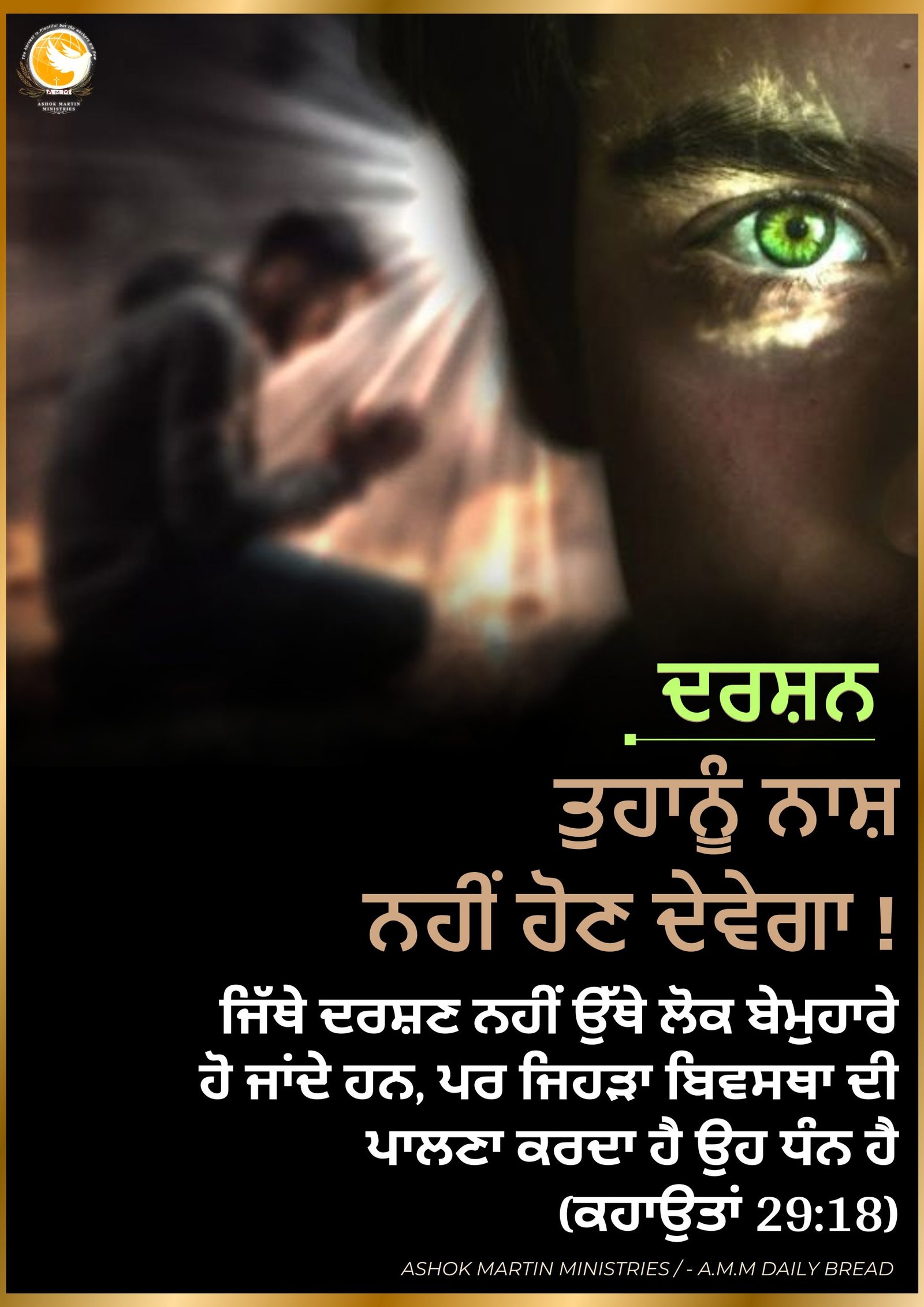 _`ਜਿੱਥੇ ਦਰਸ਼ਣ ਨਹੀਂ ਉੱਥੇ ਲੋਕ ਬੇਮੁਹਾਰੇ ਹੋ ਜਾਂਦੇ ਹਨ, ਪਰ ਜਿਹੜਾ ਬਿਵਸਥਾ ਦੀ ਪਾਲਣਾ ਕਰਦਾ ਹੈ ਉਹ ਧੰਨ ਹੈ (ਕਹਾਉਤਾਂ 29:18)`_