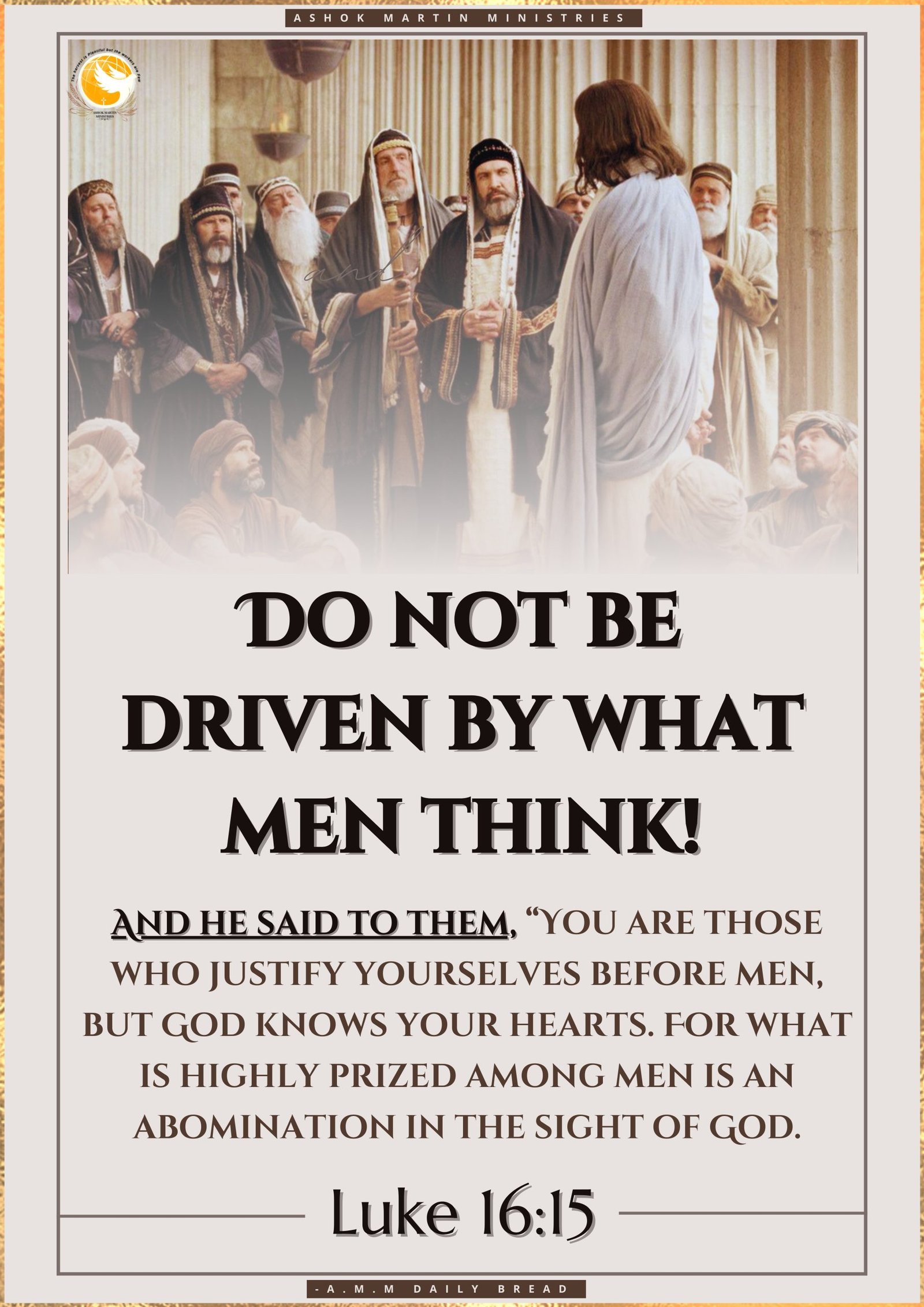 Many people are driven by the need for approval of such men. They allow the expectations of parents or spouses or children or teachers or friends to control their lives. Many adults are still trying to earn the approval of unpleasable parents. Others are driven by peer pressure, always worried by what others might think. Unfortunately, those who follow the crowd usually get lost in it. One key to failure is to try to please everyone. Being controlled by the opinions of others is a guaranteed way to miss God’s purposes for your life.
