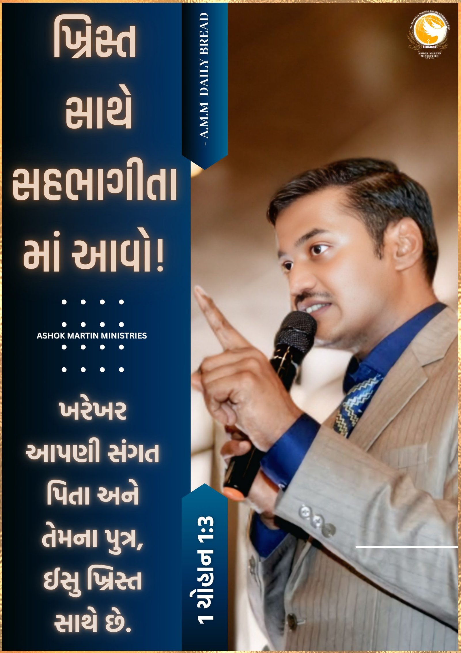 `ખરેખર આપણી સંગત પિતાની સાથે અને તેમના પુત્ર, ઈસુ ખ્રિસ્ત સાથે છે.’ 1 યોહાન 1:3 (NIV અનુસાર)`
