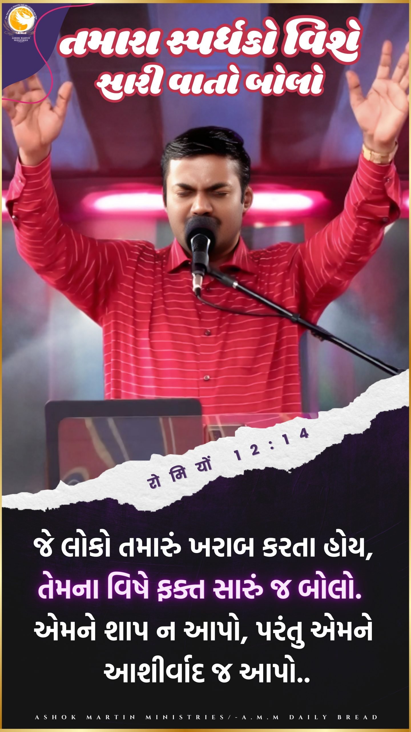 `જે લોકો તમારું ખરાબ કરતા હોય, તેમના વિષે ફક્ત સારું જ બોલો. એમને શાપ ન આપો, પરંતુ એમને આશીર્વાદ જ આપો.. રોમનો 12:14`