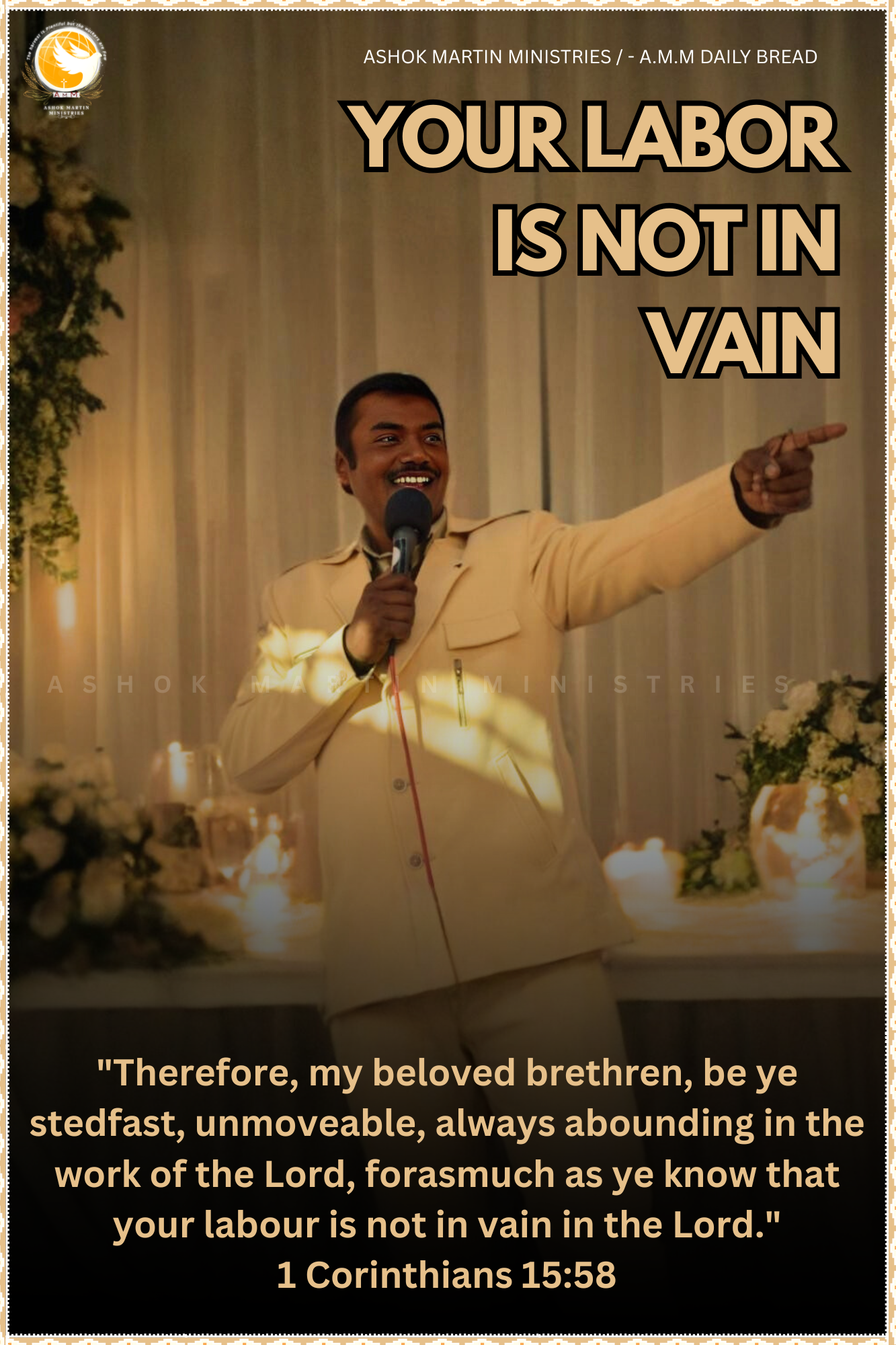`”Therefore, my beloved brethren, be ye stedfast, unmoveable, always abounding in the work of the Lord, forasmuch as ye know that your labour is not in vain in the Lord.”1 Corinthians 15:58`