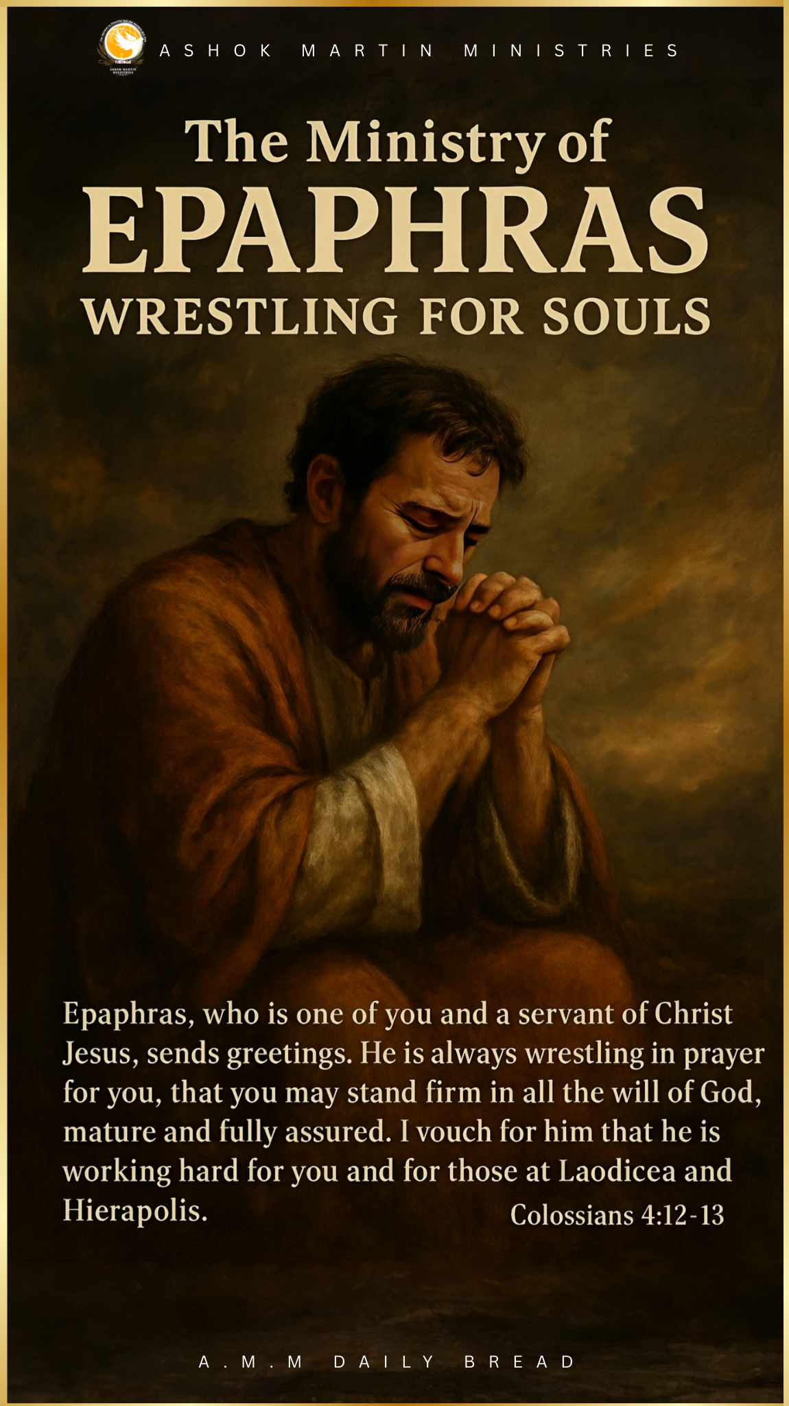Epaphras shows us that the most powerful ministry often happens out of sight. Paul calls him “our dear fellow servant” and “a faithful minister of Christ” (Colossians 1:7), and describes him as “always wrestling in prayer” for believers to stand firm, be mature, and fully assured in God’s will (Colossians 4:12). His prayers were not casual but persistent, deep intercessions for the spiritual growth of the church.