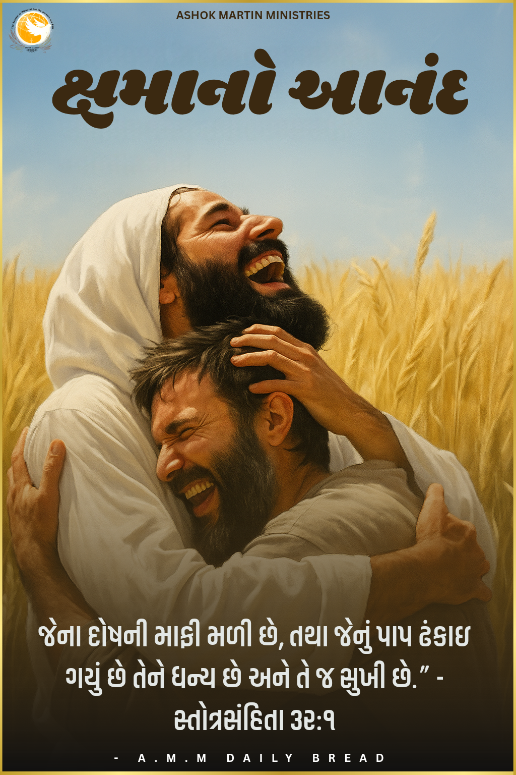 સાચો આનંદ સંપત્તિ કે સફળતામાં નથી, પણ ક્ષમામાં છે. દાઉદે કબૂલ્યું કે જ્યારે તેણે પોતાનું પાપ છુપાવ્યું, ત્યારે “મારા હાડકાં જીર્ણ થઈ ગયા… મારી શક્તિ હણાઈ ગઈ” (સ્તોત્રસંહિતા ૩૨:૩-૪). અપરાધભાવે તેને કચડી નાખ્યો, પરંતુ જ્યારે તે પરમેશ્વર તરફ વળ્યો અને કબૂલાત કરી, ત્યારે ક્ષમાથી તેનો આનંદ પાછો મળ્યો.