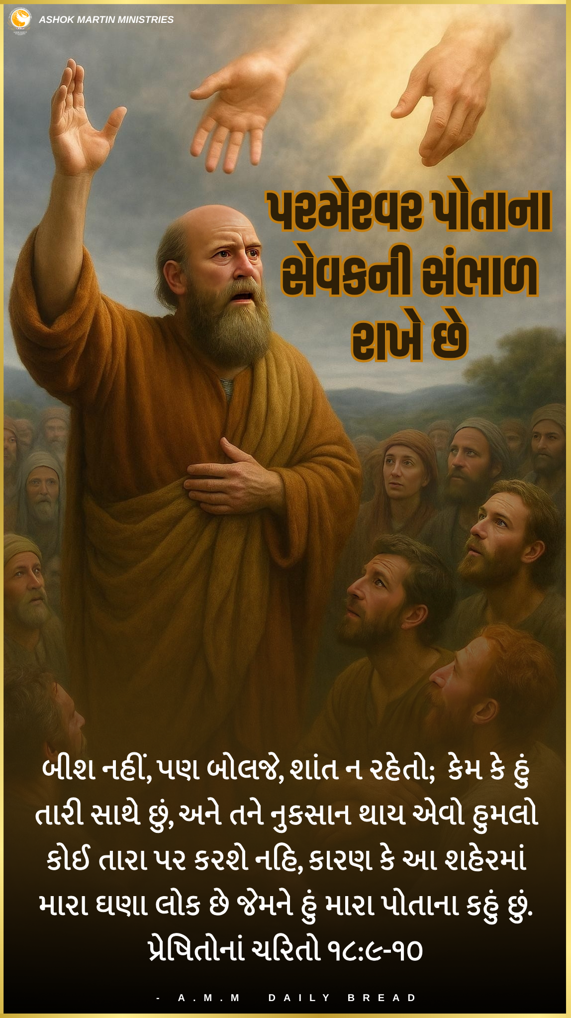 “เชคเชฎเซ เชคเซเชเชฅเซ เชกเชฐเชถเซ เชจเชนเซเช; เชเซเชฎเชเซ เชคเชฎเชพเชฐเชพ เชชเชฐเชฎเซเชถเซเชตเชฐ เชฏเชนเซเชตเชพ เชชเซเชคเซ เชคเชฎเชพเชฐเชพ เชฎเชพเชเซ เชฒเชกเชถเซ.” (เช