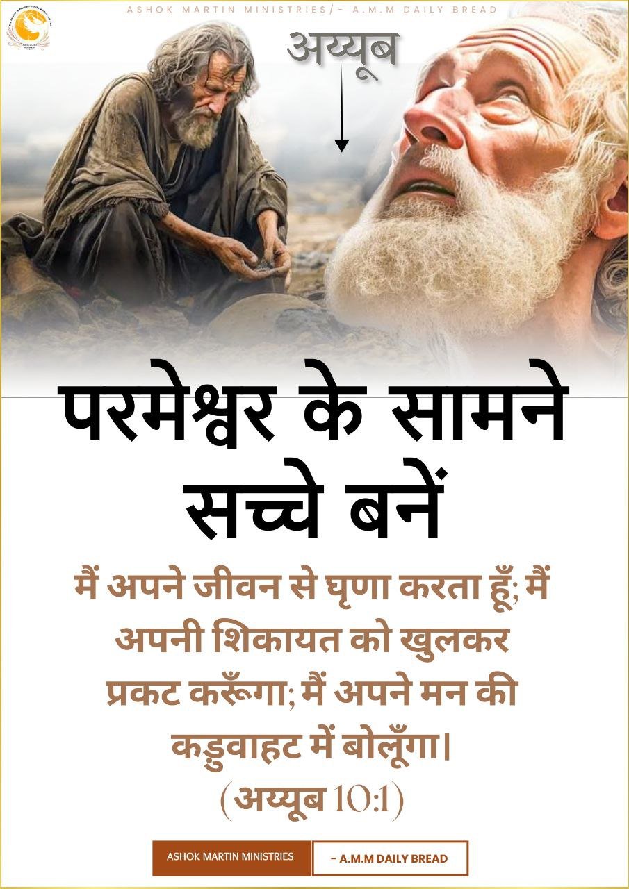 “मैं अपने जीवन से घृणा करता हूँ; मैं अपनी शिकायत को खुलकर प्रकट करूँगा; मैं अपने मन की कड़ुवाहट में बोलूँगा।” (अय्यूब 10:1 HINOV)