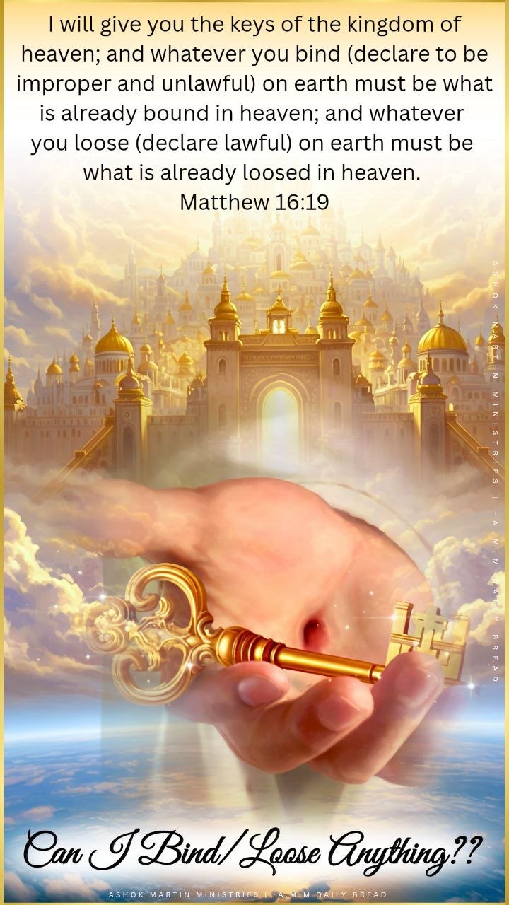 When Jesus said, _“I will give you the keys of the kingdom of heaven…”_ He was referring to spiritual authority—the right to represent heaven’s rule on earth. What you “bind” or “loose” on earth should align with what heaven has already decided. This doesn’t mean humans can command heaven—it means heaven is entrusting authority to believers to enforce God’s will on earth (Matthew 6:10).