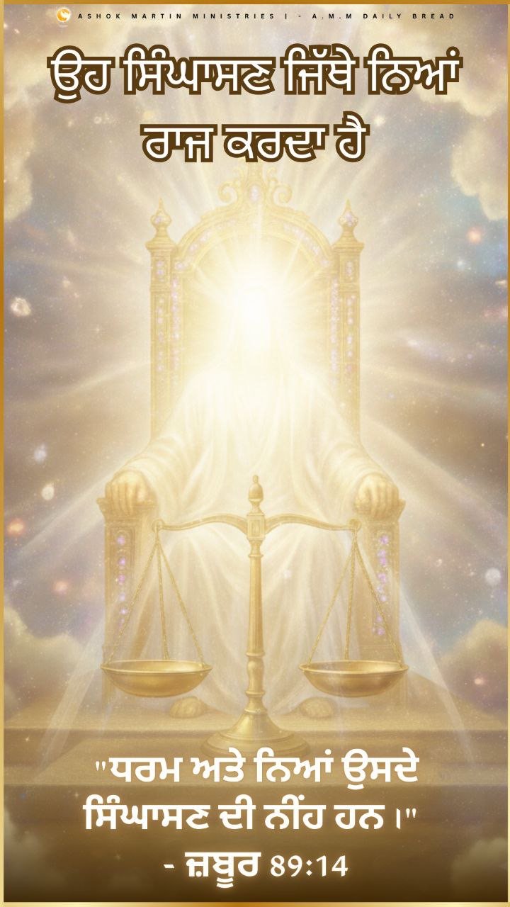 ਪਰਮੇਸ਼ੁਰ ਨਿਆਂਕਾਰ ਹੈ, ਅਤੇ ਉਸਦਾ ਸਿੰਘਾਸਣ ਧਾਰਮਿਕਤਾ ਅਤੇ ਨਿਆਂ ‘ਤੇ ਸਥਾਪਿਤ ਹੈ। ਜਦੋਂ ਮਨੁੱਖੀ ਪ੍ਰਣਾਲੀਆਂ ਅਸਫਲ ਹੋ ਜਾਂਦੀਆਂ ਹਨ, ਤਾਂ ਸਵਰਗ ਅਜੇ ਵੀ ਸੱਚਾਈ ਵਿੱਚ ਰਾਜ ਕਰਦਾ ਹੈ। *”ਕੀ ਸਾਰੀ ਧਰਤੀ ਦਾ ਨਿਆਂਕਾਰ ਨਿਆਂ ਨਹੀਂ ਕਰੇਗਾ?”* (ਉਤਪਤ 18:25)।