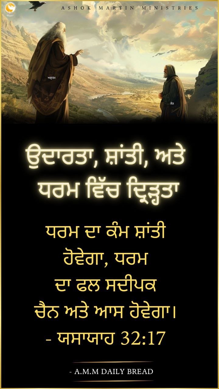 ਧਰਮ ਦਾ ਕੰਮ ਸ਼ਾਂਤੀ ਹੋਵੇਗਾ, ਧਰਮ ਦਾ ਫਲ ਸਦੀਪਕ ਚੈਨ ਅਤੇ ਆਸ ਹੋਵੇਗਾ। ਯਸਾਯਾਹ 32:17