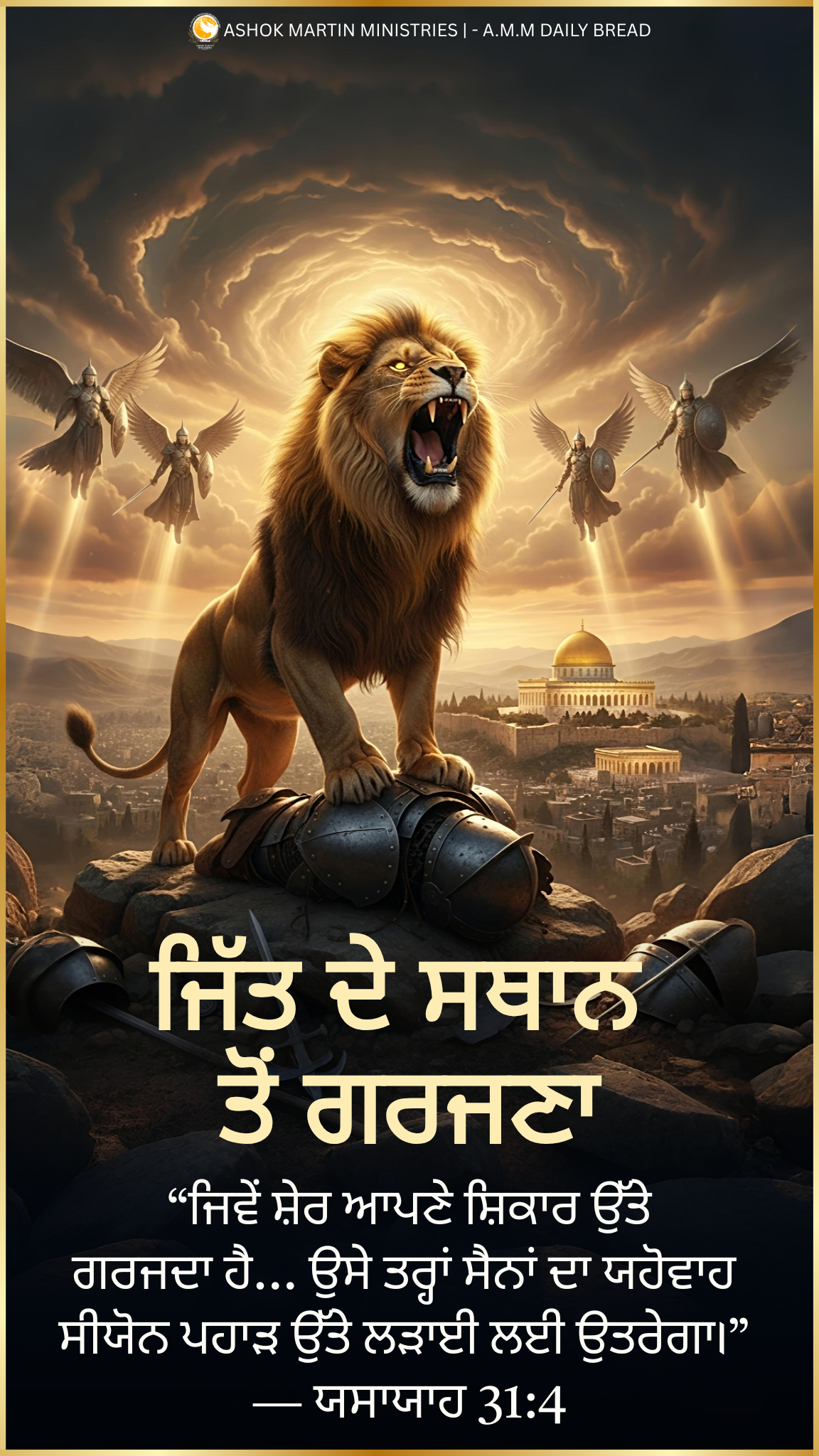 ਜਦੋਂ ਅਸੀਂ ਪ੍ਰਾਰਥਨਾ ਵਿੱਚ ਯੁੱਧ ਕਰਦੇ ਹਾਂ, ਤਾਂ ਸਾਡੀ ਗਰਜ ਡਰ ਜਾਂ ਚਿੰਤਾ ਤੋਂ ਨਹੀਂ, ਸਗੋਂ ਵਿਸ਼ਵਾਸ ਅਤੇ ਭਰੋਸੇ ਤੋਂ ਉੱਠਦੀ ਹੈ। ਸਾਡੀ ਆਵਾਜ਼ ਸਲੀਬ ਉੱਤੇ ਪਹਿਲਾਂ ਹੀ ਪ੍ਰਾਪਤ ਕੀਤੀ ਗਈ ਜਿੱਤ ਤੋਂ ਆਉਂਦੀ ਹੈ। ਸ਼ੈਤਾਨ ਦਾ ਸ਼ੋਰ ਘਬਰਾਹਟ ਦੀ ਆਵਾਜ਼ ਹੈ, ਪਰ ਸਾਡੀ ਗਰਜ ਰਾਜ, ਮੁਕਤੀ ਅਤੇ ਜਿੱਤ ਦਾ ਐਲਾਨ ਕਰਦੀ ਹੈ। *“ਧਰਮੀ ਸ਼ੇਰਾਂ ਵਾਂਗ ਦਲੇਰ ਹਨ।”* — ਕਹਾਉਤਾਂ 28:1