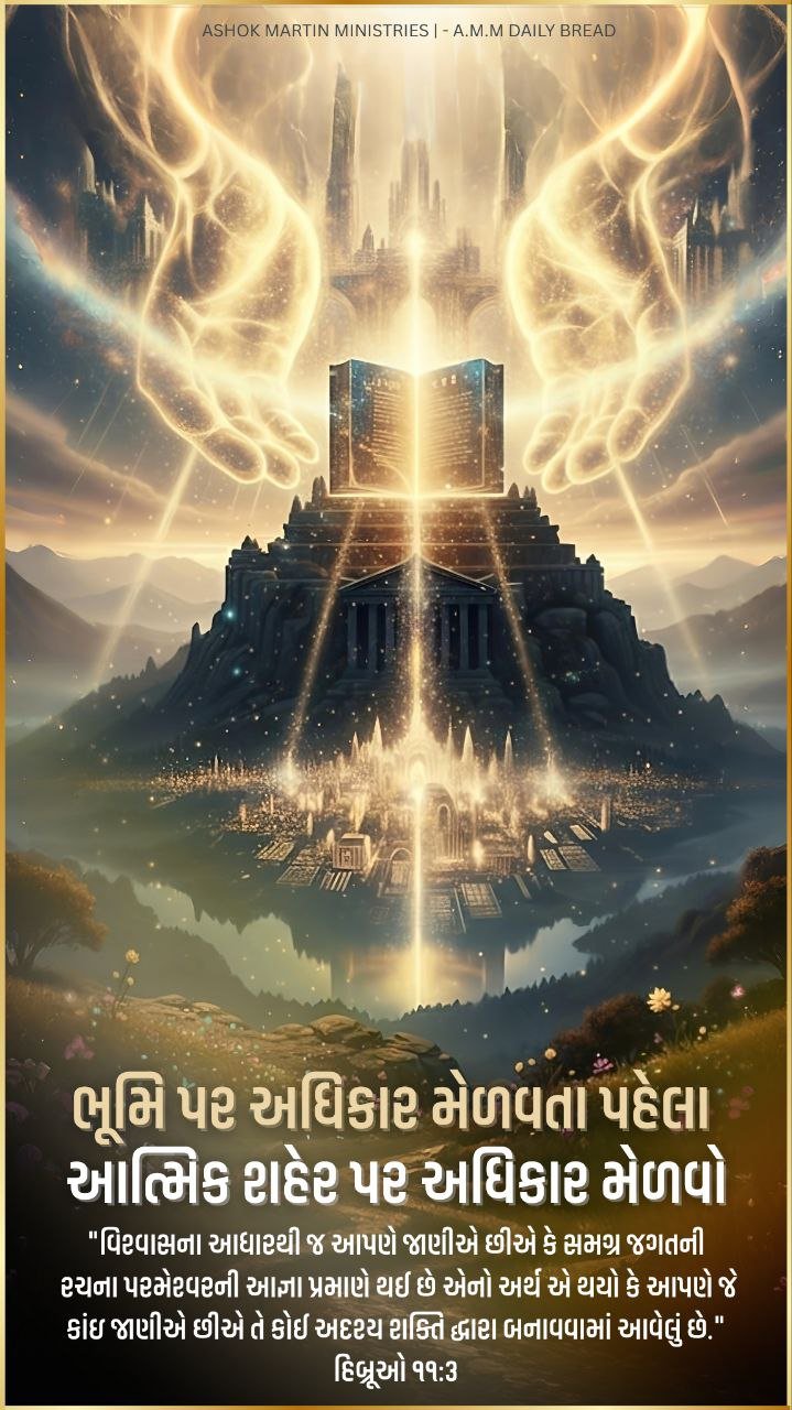 *તેથી તમારી ભૂમિને બોલો, તમારી વેદી ઉંચી કરો, અને જાહેર કરો:* _”પૃથ્વી પ્રભુની છે અને તેની પૂર્ણતા છે. હું ઈસુના નામે આત્માનાં શહેરનો અધિકાર લઉં છે. દરેક છુપાયેલું સિંહાસન ખ્રિસ્તના સિંહાસન સમક્ષ નમન કરે છે. હું અહીં શાસન કરું છું કારણ કે તે મારામાં શાસન કરે છે.”_
