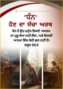 ਧੰਨ ਹੋਣ ਦਾ ਅਰਥ ਹੈ ਸੱਚਮੁੱਚ *ਅਨੰਦਿਤ* ਹੋਣਾ – ਪਰ ਜਿਵੇਂ ਦੁਨੀਆਂ ਖੁਸ਼ੀ ਨੂੰ ਪਰਿਭਾਸ਼ਿਤ ਕਰਦੀ ਹੈ, ਉਸ ਤਰ੍ਹਾਂ ਨਹੀਂ। ਪ੍ਰਾਚੀਨ ਸਮੇਂ ਵਿੱਚ, ਇਸ ਸ਼ਬਦ ਨੇ ਉਨ੍ਹਾਂ ਲੋਕਾਂ ਦਾ ਵਰਣਨ ਕੀਤਾ ਜੋ ਗਰੀਬੀ, ਬਿਮਾਰੀ ਜਾਂ ਮੌਤ ਤੋਂ ਅਛੂਤੇ ਹਨ – ਉਹ ਇੱਕ ਡੂੰਘੀ, ਅਟੱਲ ਖੁਸ਼ੀ ਰੱਖਦੇ ਹਨ ਜਿਸਨੂੰ ਕੋਈ ਵੀ ਹਾਲਾਤ ਚੋਰੀ ਨਹੀਂ ਕਰ ਸਕਦੇ। ਦੁੱਖ ਦੀ ਗੱਲ ਹੈ ਕਿ ਅੱਜ ਲੋਕ ਚੀਜ਼ਾਂ, ਸੁੱਖਾਂ ਜਾਂ ਮਨੁੱਖੀ ਰਿਸ਼ਤਿਆਂ ਵਿੱਚ ਖੁਸ਼ੀ ਦਾ ਪਿੱਛਾ ਕਰਦੇ ਹਨ। ਫਿਰ ਵੀ ਸੱਚੀ ਤਰ੍ਹਾਂ ਧੰਨ ਹੋਣਾ ਦੈਵਿਕ ਹੈ – ਇਹ ਸਿਰਫ਼ ਪਰਮੇਸ਼ਰ ਦੁਆਰਾ ਆਉਂਦੀ ਹੈ ਅਤੇ ਉਨ੍ਹਾਂ ਲੋਕਾਂ ਨਾਲ ਸੰਬੰਧਿਤ ਹੈ ਜੋ ਧਾਰਮਿਕਤਾ ਵਿੱਚ ਚੱਲਦੇ ਹਨ। ਦੁਨੀਆਂ ਦਾ ਪਾਪ ਥੋੜ੍ਹੇ ਸਮੇਂ ਲਈ ਖੁਸ਼ੀ ਦੀ ਪੇਸ਼ਕਸ਼ ਕਰ ਸਕਦਾ ਹੈ, ਪਰ ਇਹ ਖਾਲੀਪਣ ਅਤੇ ਸਰਾਪ ਵਿੱਚ ਖਤਮ ਹੁੰਦਾ ਹੈ। ਸਿਰਫ਼ ਪਵਿੱਤਰਤਾ ਹੀ ਸਥਾਈ ਅਨੰਦ ਅਤੇ ਸ਼ਾਂਤੀ ਵੱਲ ਲੈ ਜਾਂਦੀ ਹੈ।