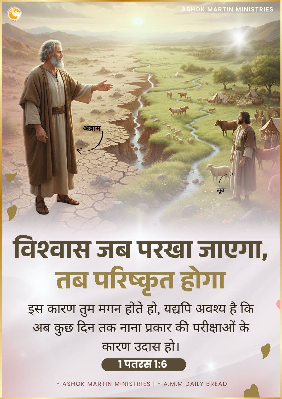 उत्पत्ति 13–16 में अब्राम की यात्रा यह दिखाती है कि *जब दृष्टि विफल होती है, तब विश्वास परिपक्व होता है।* जब लूत ने यरदन की हरी-भरी भूमि को चुना, अब्राम ने उस प्रतिज्ञा पर भरोसा किया जो अभी दिखाई नहीं दे रही थी। परमेश्वर की वाचा उस व्यक्ति से हुई जो दृष्टि से नहीं, *विश्वास से* चला।