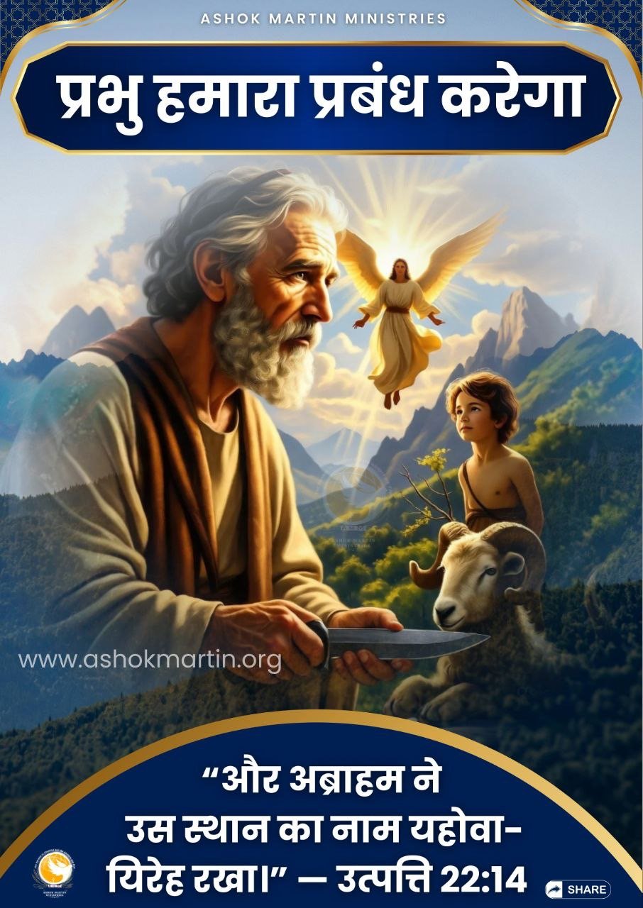 आज का वचन हमें एक सुंदर सत्य दिखाता है — *परमेश्वर सदा प्रबंध करता है* उनके लिए जो उस पर भरोसा रखते हैं। बलिदान के पर्वत से लेकर उद्धार के क्रूस तक, उसका प्रबंध कभी असफल नहीं होती। 💖