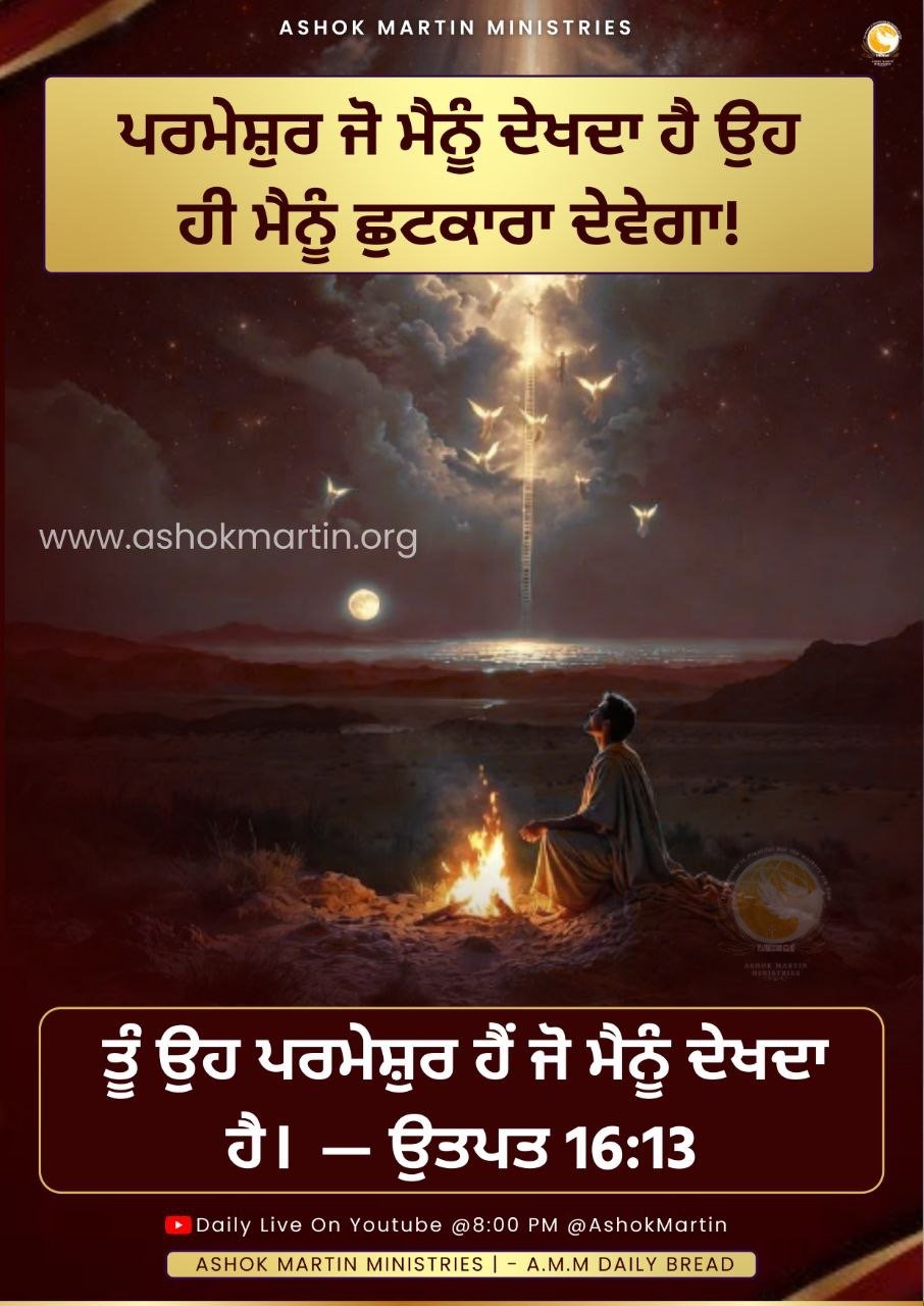 💬 *ਜਦੋਂ ਤੁਸੀਂ ਅੱਜ ਪੜ੍ਹਨਾ ਖਤਮ ਕਰਦੇ ਹੋ, ਤਾਂ ਸਮੂਹ ਵਿੱਚ ਇੱਕ 👍 ਕਰੋ ਅਤੇ ਐਲਾਨ ਕਰੋ:* “ਉਹ ਪਰਮੇਸ਼ਰ ਜੋ ਮੈਨੂੰ ਦੇਖਦਾ ਹੈ, ਓਹੀ ਮੈਨੂੰ ਛੁਡਾਵੇਗਾ!”