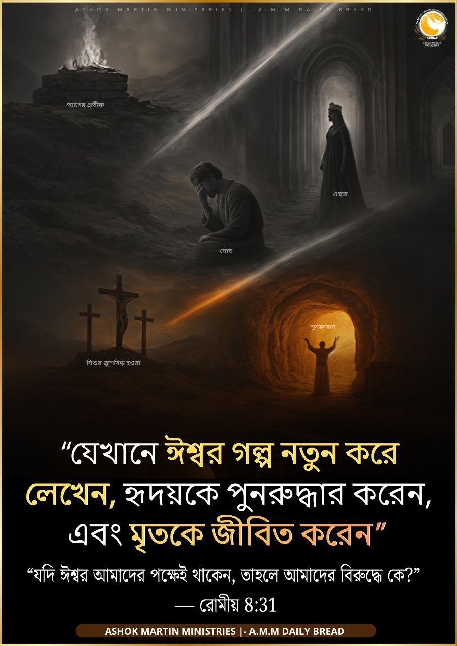 আজকের পাঠে আমরা ঈশ্বরের শক্তির এক বিস্ময়কর যাত্রা দেখি—লেবীয় পুস্তকের বেদী থেকে শুরু করে আয়ূবের যন্ত্রণা পর্যন্ত, ইস্টের গোপন সাহস থেকে কালবেরি পাহাড় পর্যন্ত, এবং শেষে করিন্থীয়দের মধ্যে পুনরুত্থানের গৌরব পর্যন্ত।