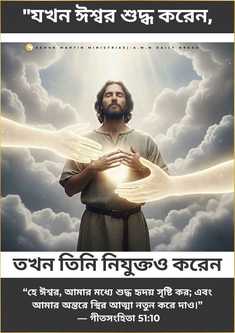 ঈশ্বরকে আপনাকে শুদ্ধ করতে দিন, পরীক্ষা করতে দিন, শাসন করতে দিন, নতুন করতে দিন এবং শেষ পর্যন্ত ব্যবহার করতে দিন—কারণ পবিত্রতা কখনো শুধু বিচ্ছিন্নতা নয়; এটি শক্তি, স্পষ্টতা ও আহ্বানের প্রস্তুতি।