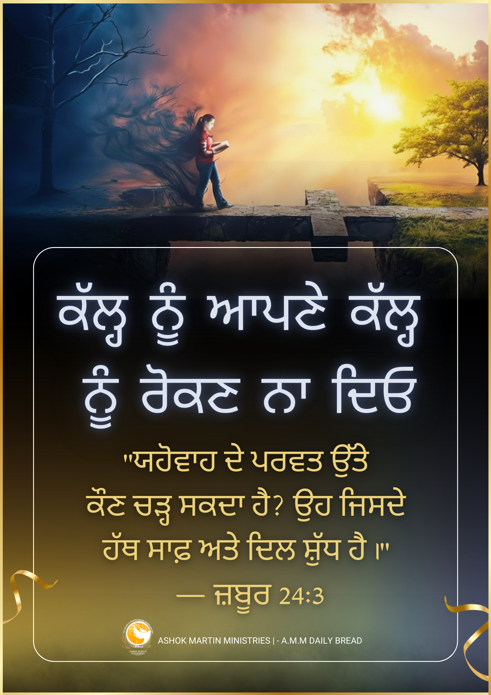 > `”ਯਹੋਵਾਹ ਦੇ ਪਰਵਤ ਉੱਤੇ ਕੌਣ ਚੜ੍ਹ ਸਕਦਾ ਹੈ? ਉਹ ਜਿਸਦੇ ਹੱਥ ਸਾਫ਼ ਅਤੇ ਦਿਲ ਸ਼ੁੱਧ ਹੈ।” — ਜ਼ਬੂਰ 24:3`