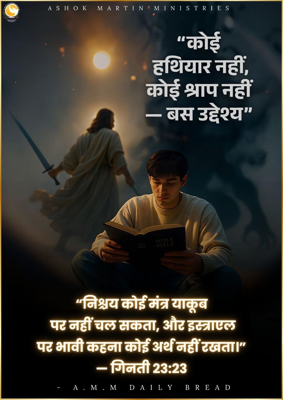 जब परमेश्वर आशीष बोलता है, तो कोई श्राप, कोई योजना, कोई विरोध उसे पलट नहीं सकता। बिलाम ने श्राप देने की कोशिश की, परन्तु परमेश्वर ने आशीष को ही प्रकट कराया—आपकी मंज़िल मनुष्य के मुख पर नहीं, परमेश्वर की वाचा पर टिकी है। *(गिनती 23–24)*