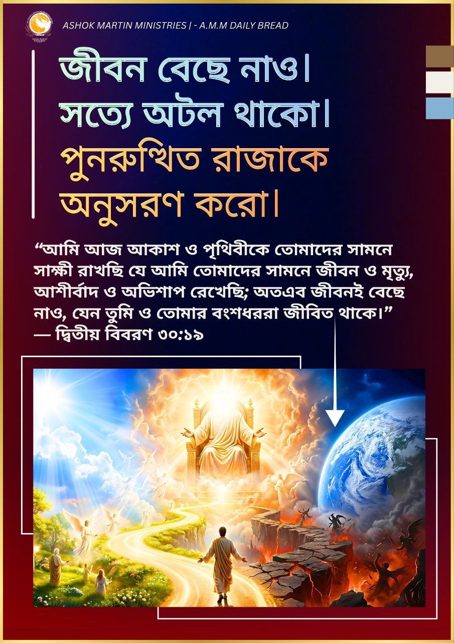 জীবন বেছে নাও। সত্যে অটল থাকো। পুনরুত্থিত রাজাকে অনুসরণ করো।