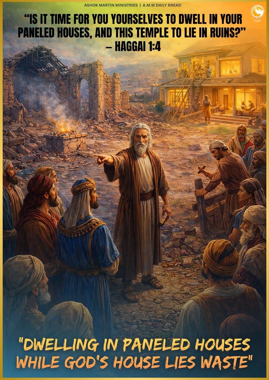 > “Is it time for you yourselves to dwell in your paneled houses, and this temple to lie in ruins?” — Haggai 1:4