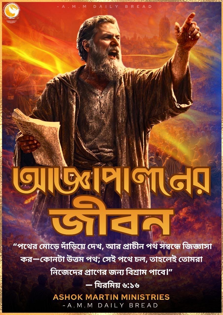> “পথের মোড়ে দাঁড়িয়ে দেখ, আর প্রাচীন পথ সম্বন্ধে জিজ্ঞাসা কর—কোনটা উত্তম পথ; সেই পথে চল, তাহলেই তোমরা নিজেদের প্রাণের জন্য বিশ্রাম পাবে।” — যিরমিয় ৬:১৬ (KJV)